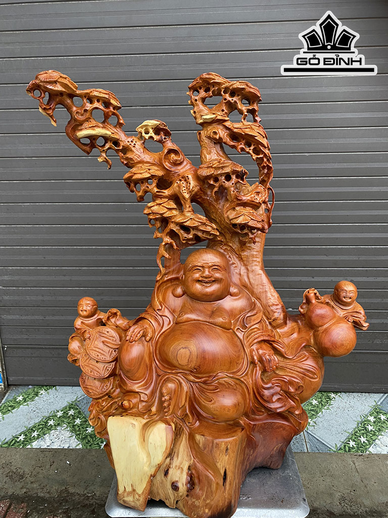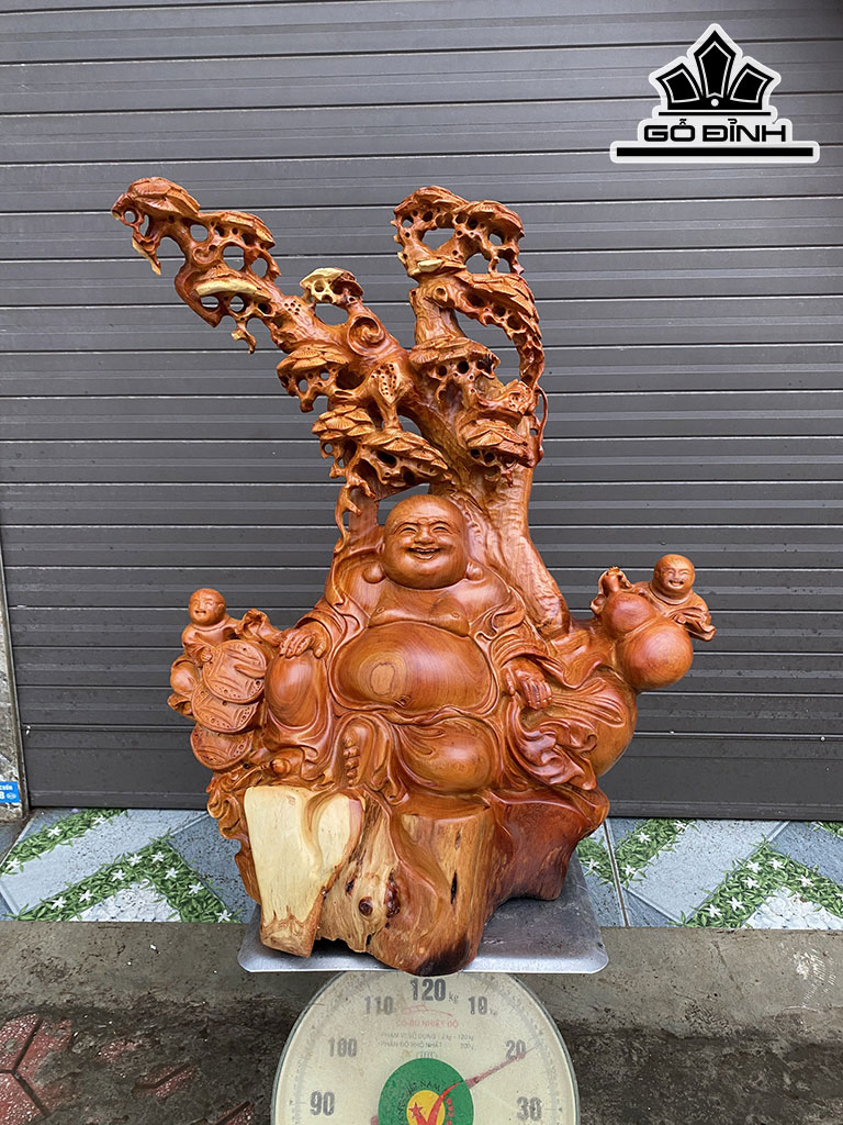 Tượng Phật Di Lặc Nhị Phúc Gỗ Hương Cao 68 Ngang 55 Sâu 25 (cm)