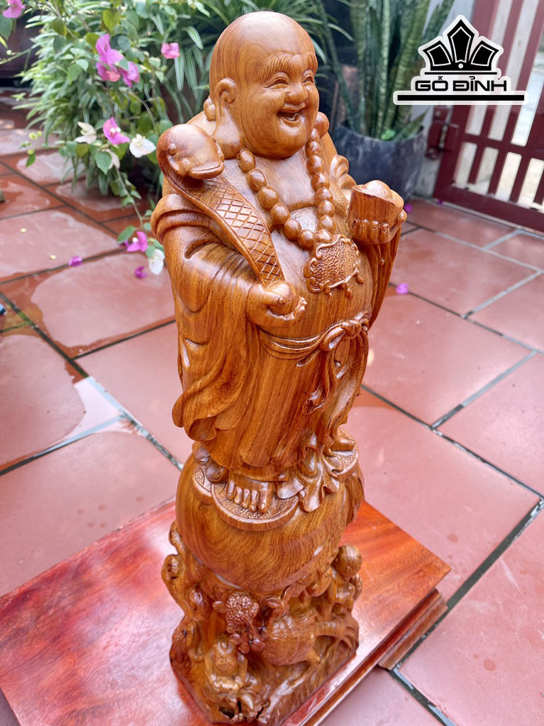 Tượng Phật Di Lặc Nhị Phúc Gỗ Hương Cao 75 Ngang 22 Sâu 17 (cm)