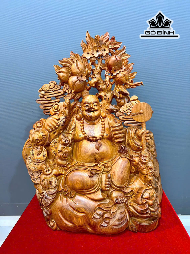Tượng Phật Di Lặc Nhị Phúc Gỗ Hương Cao 78 Ngang 62 Sâu 32 (cm)