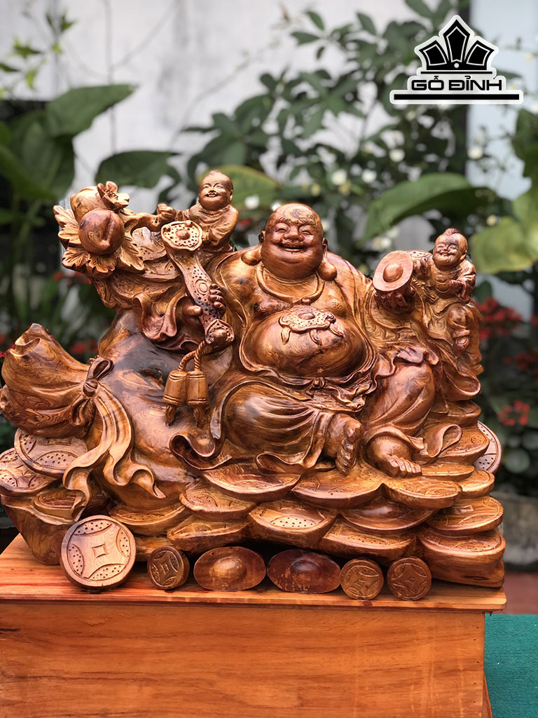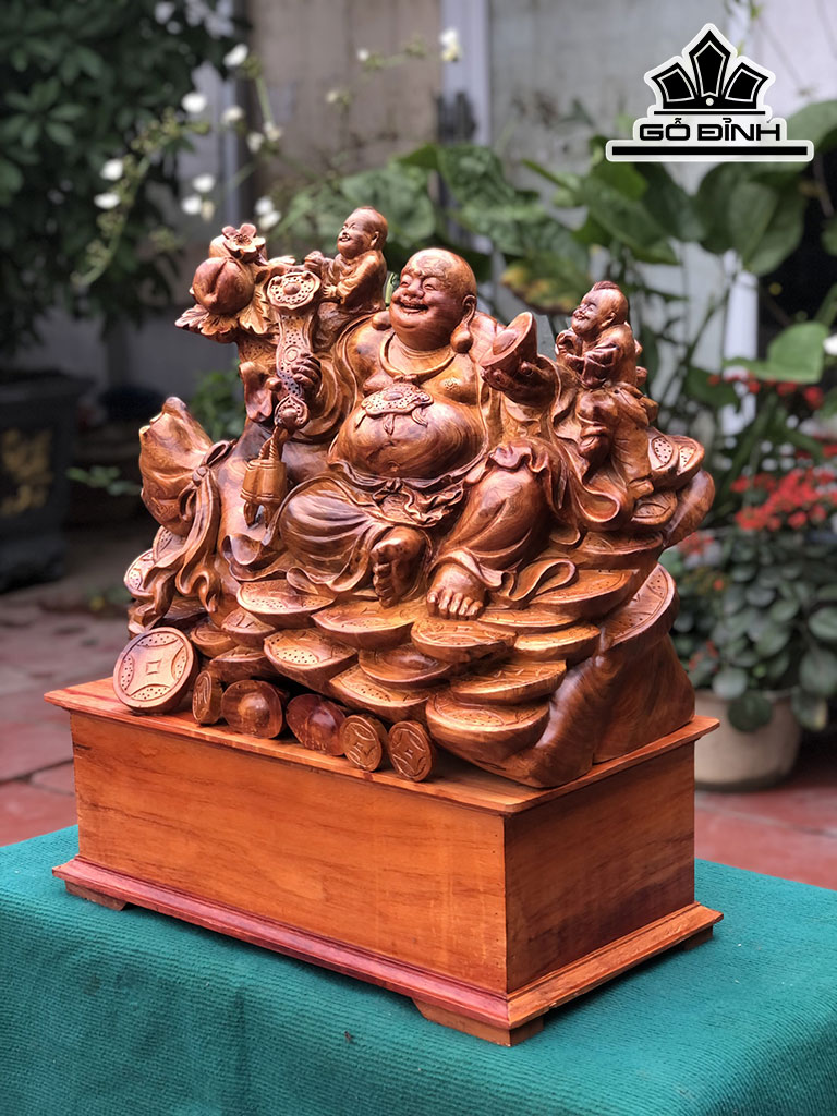 Tượng Phật Di Lặc Nhị Phúc Gỗ Hương Cao Cả Kỷ 63 Riêng Tượng 43 Ngang 56 Sâu 30 (cm)