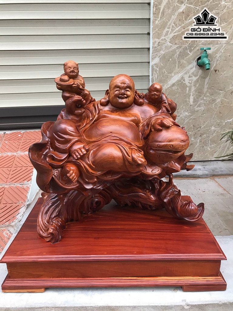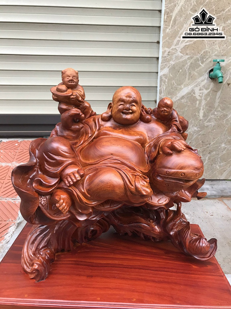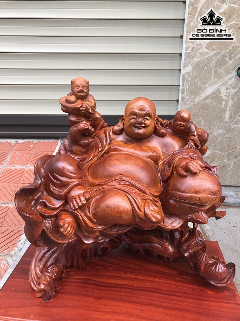 Tượng Phật Di Lặc Nhị Phúc Gỗ Hương Việt Cao 44 Ngang 47 Sâu 32 (cm)