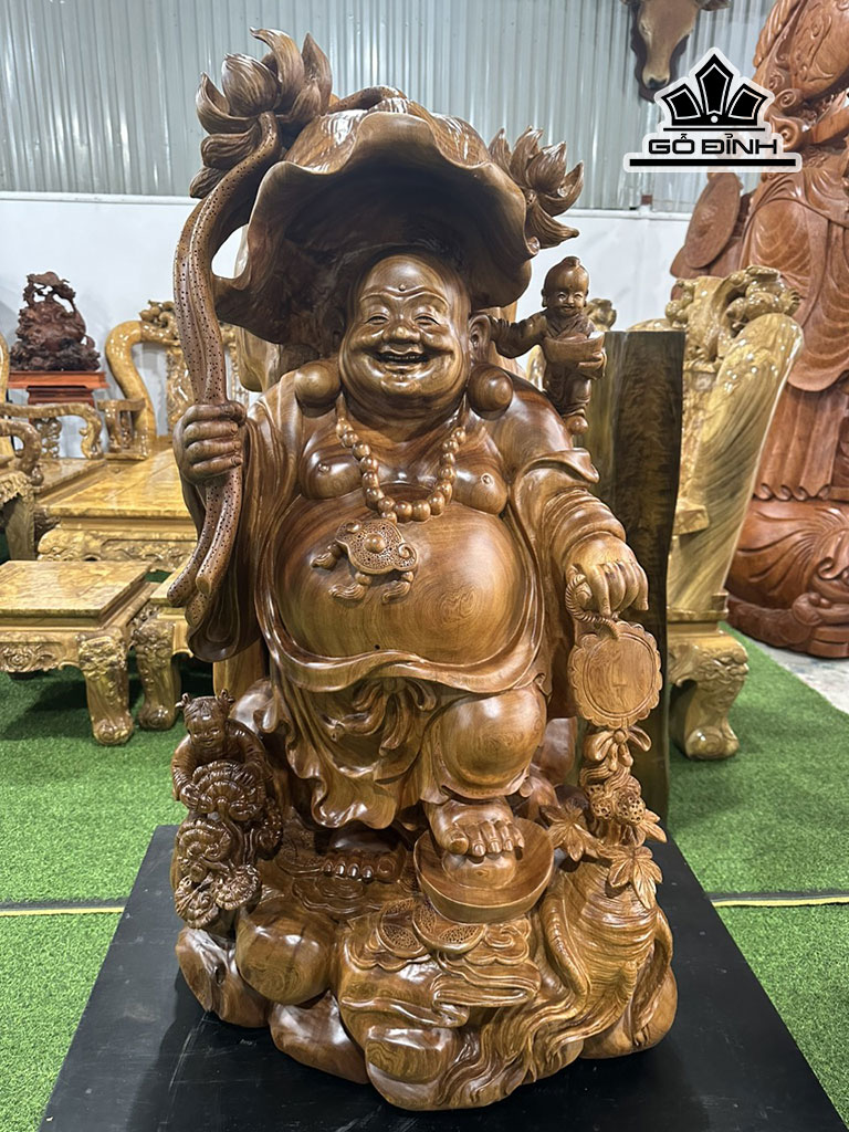 Tượng Phật Di Lặc Nhị Phúc Gỗ Ngọc Am Cao 106 Ngang 54 Sâu 43 (cm)