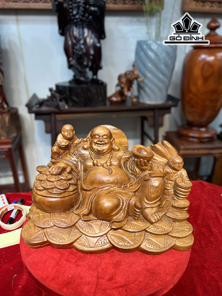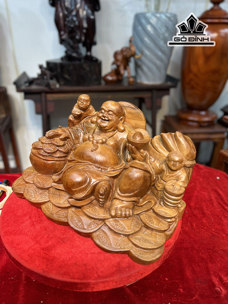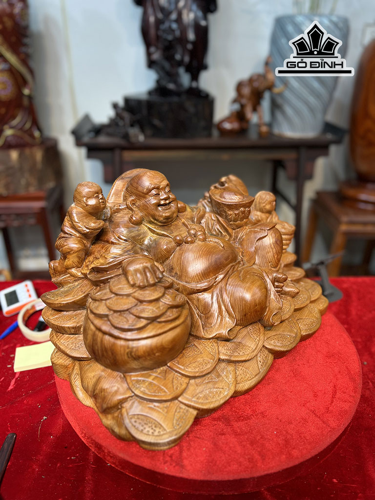 Tượng Phật Di Lặc Nhị Phúc Gỗ Ngọc Am Cao 25 Ngang 42 Sâu 24 (cm)