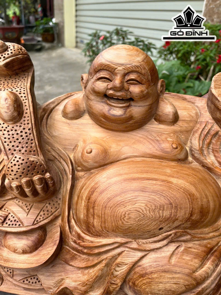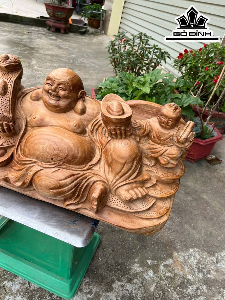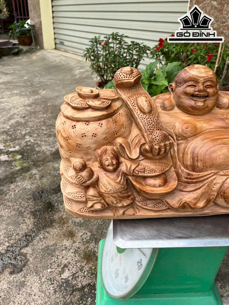 Tượng Phật Di Lặc Nhị Phúc Gỗ Ngọc Am Cao 26 Ngang 55 Sâu 22 (cm)
