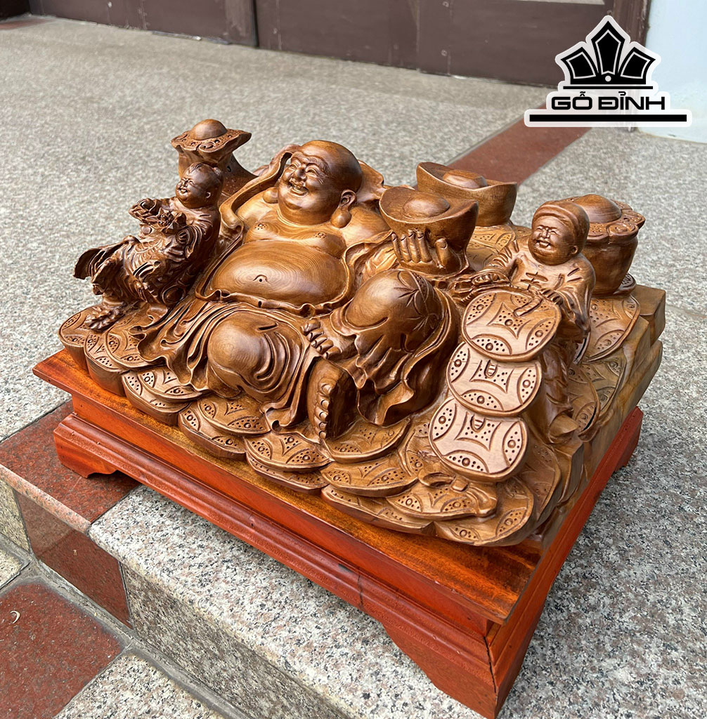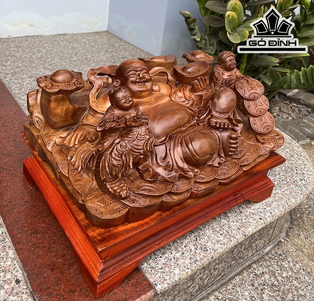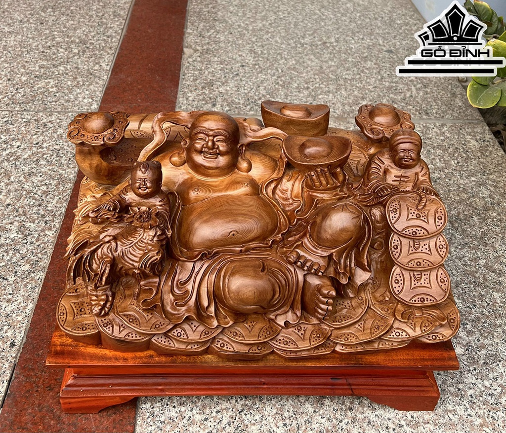 Tượng Phật Di Lặc Nhị Phúc Gỗ Ngọc Am Cao 28 Ngang 42 Sâu 21 (cm)