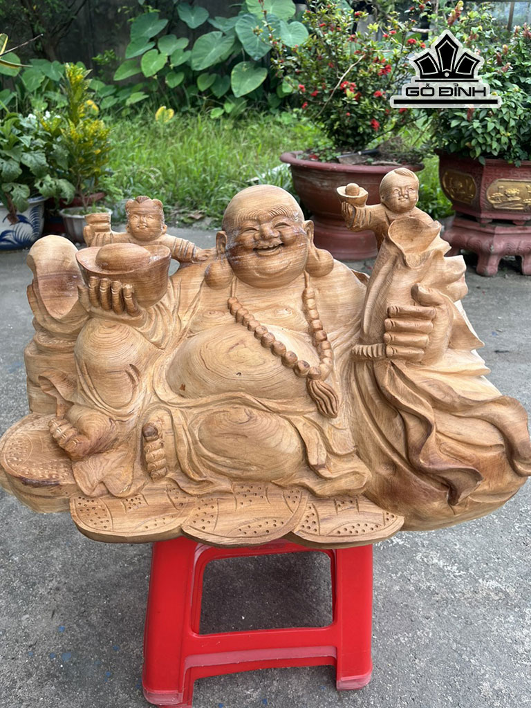 Tượng Phật Di Lặc Nhị Phúc Gỗ Ngọc Am Cao 31 Ngang 52 Sâu 30 (cm)