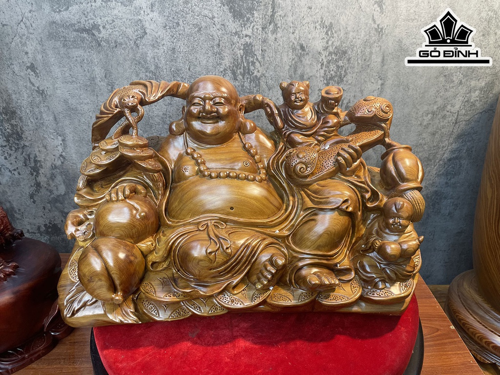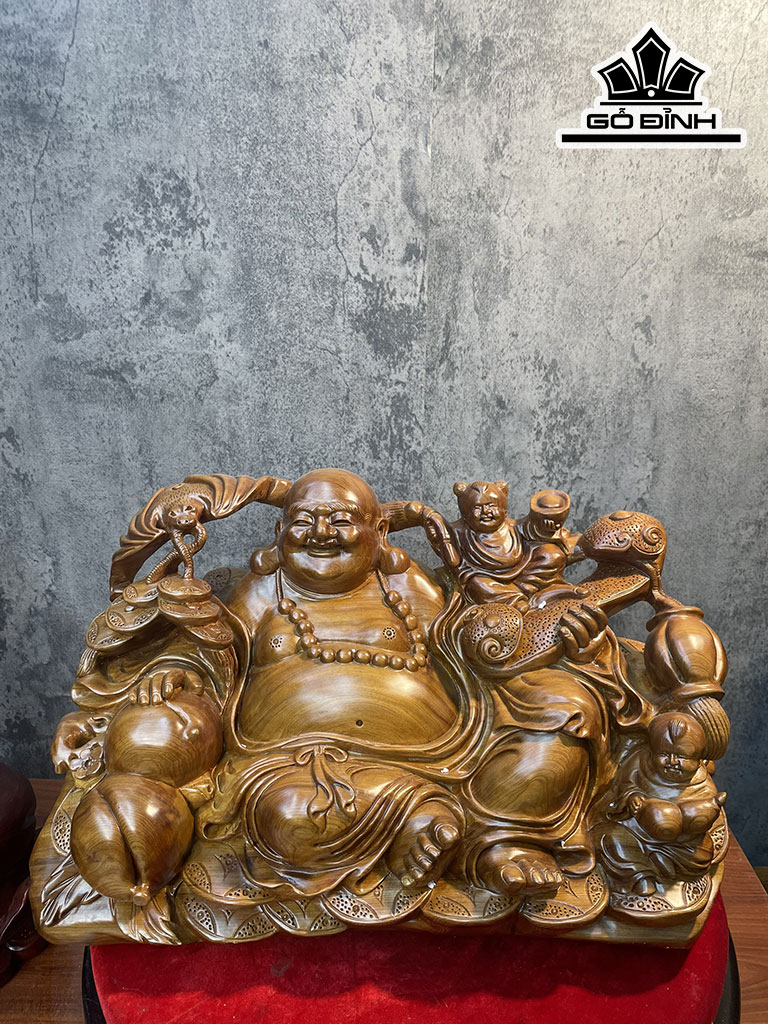 Tượng Phật Di Lặc Nhị Phúc Gỗ Ngọc Am Cao 32 Ngang 50 Sâu 22 (cm)