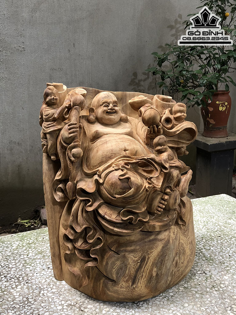 Tượng Phật Di Lặc Nhị Phúc Gỗ Ngọc Am Cao 46 Ngang 37 Sâu 33 (cm)