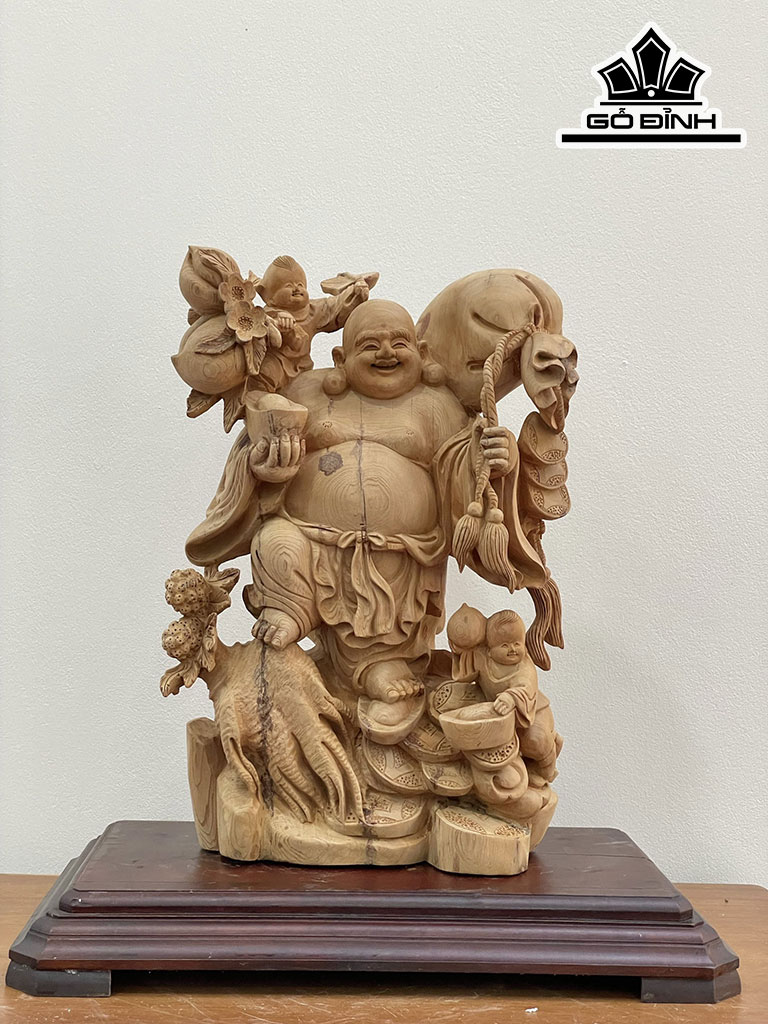 Tượng Phật Di Lặc Nhị Phúc Gỗ Ngọc Am Cao 48 Ngang 31 Sâu 20 (cm)