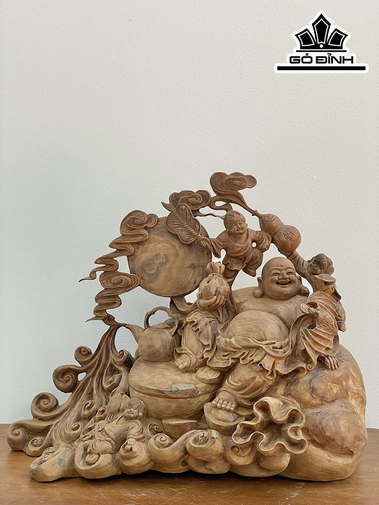 Tượng Phật Di Lặc Nhị Phúc Gỗ Ngọc Am Cao 48 Ngang 60 Sâu 30 (cm)