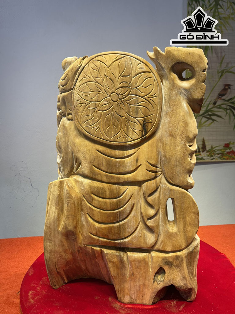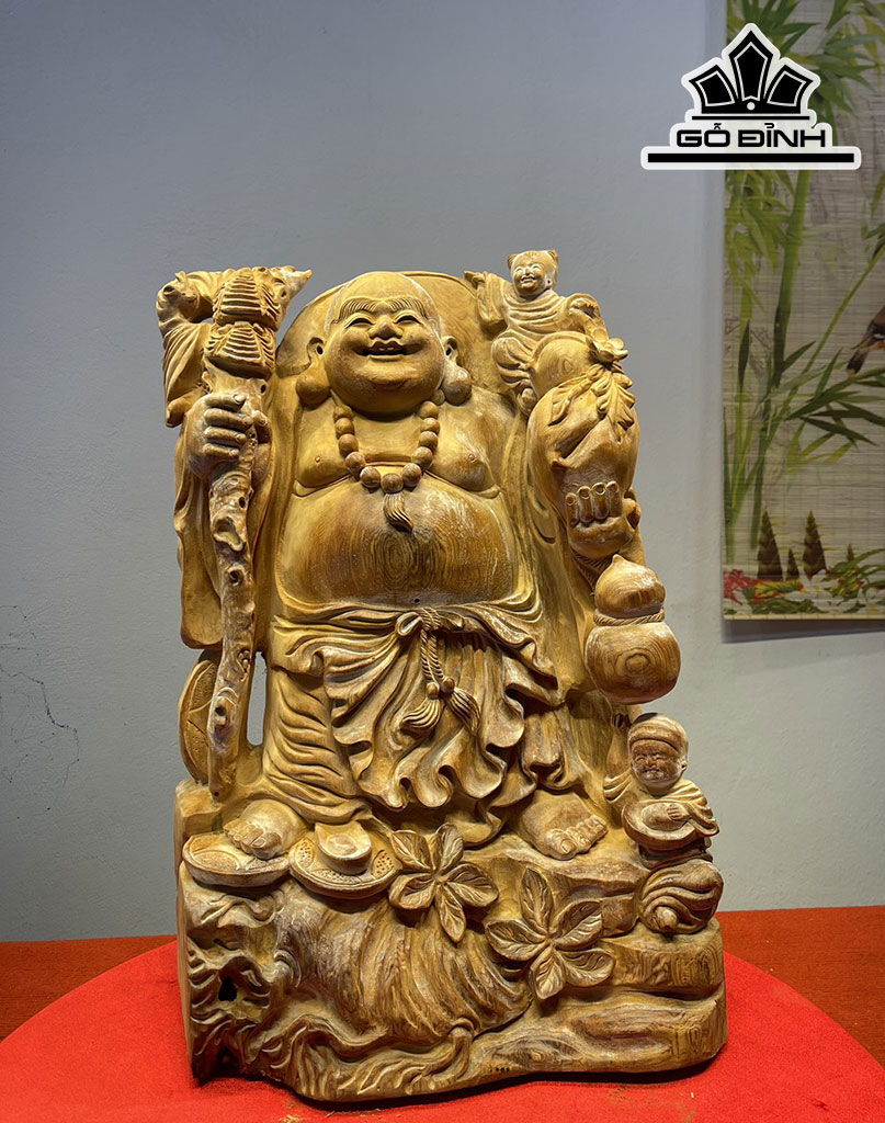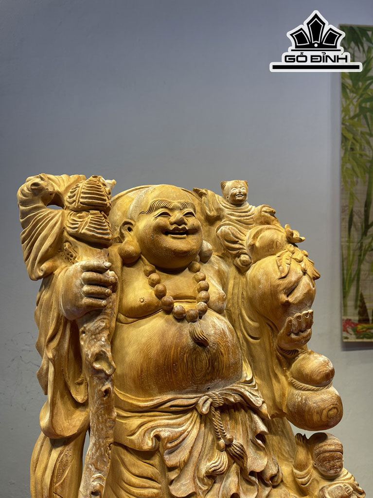 Tượng Phật Di Lặc Nhị Phúc Gỗ Ngọc Am Cao 62 Ngang 40 Sâu 20 (cm)