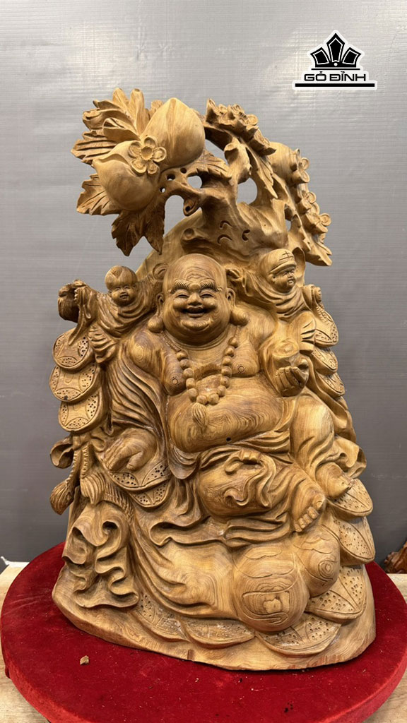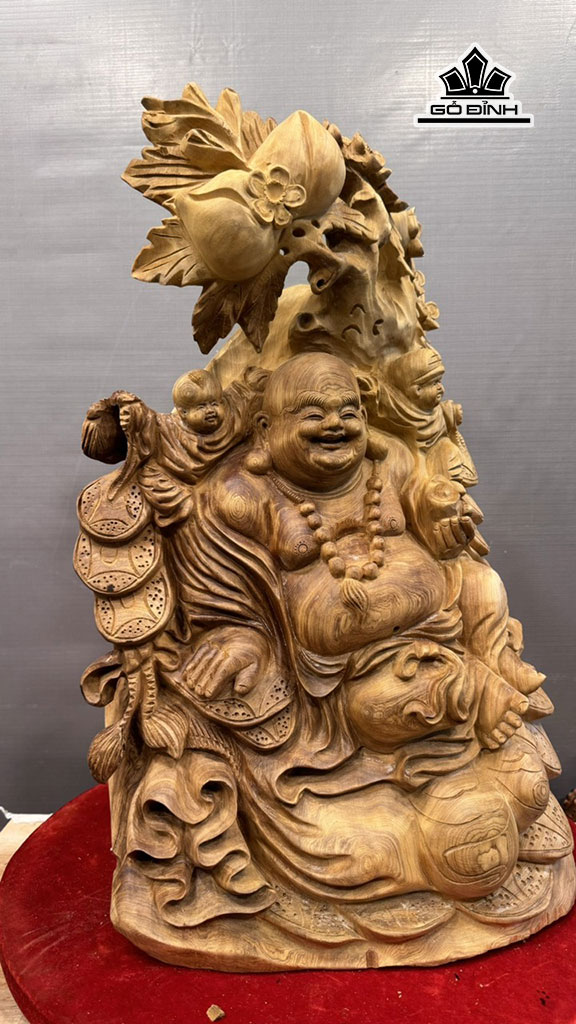 Tượng Phật Di Lặc Nhị Phúc Gỗ Ngọc Am Cao 70 Ngang 36 Sâu 35 (cm) 27kg