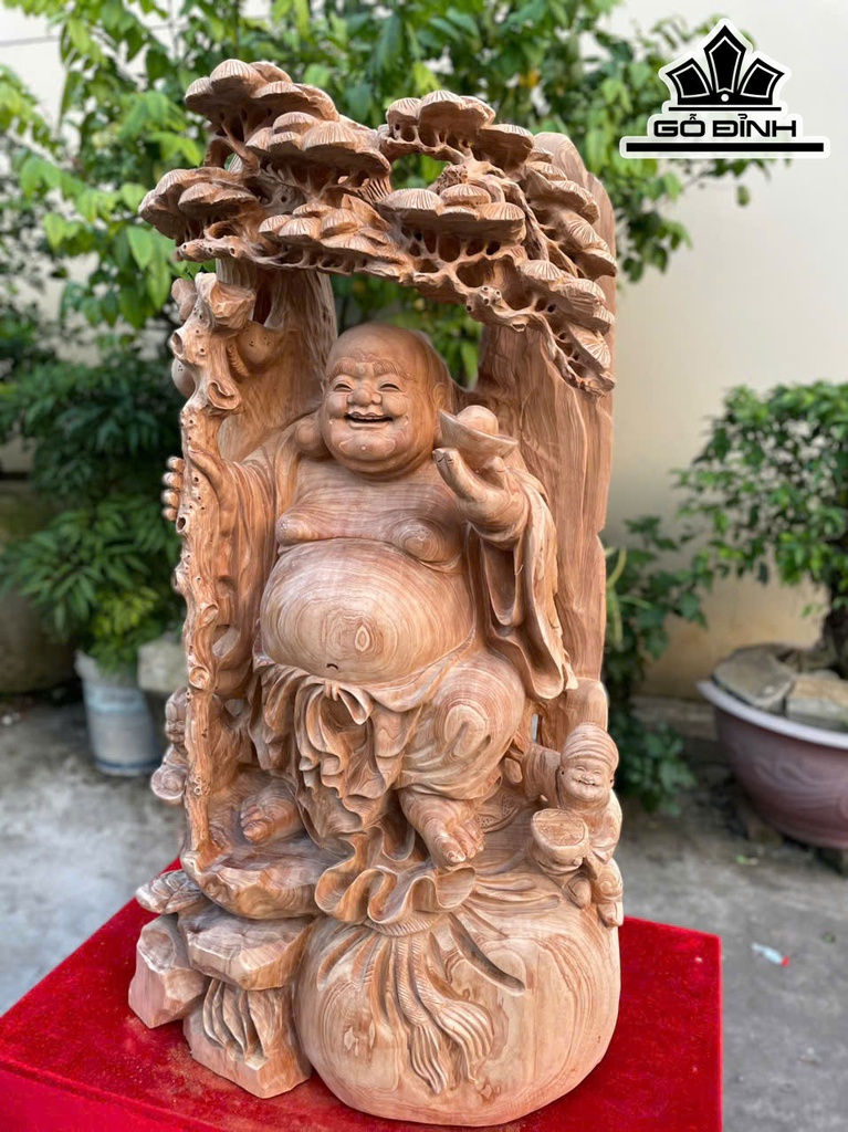 Tượng Phật Di Lặc Nhị Phúc Gỗ Ngọc Am Cao 79 Ngang 40 Sâu 23 (cm)