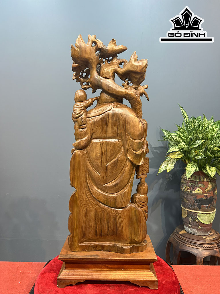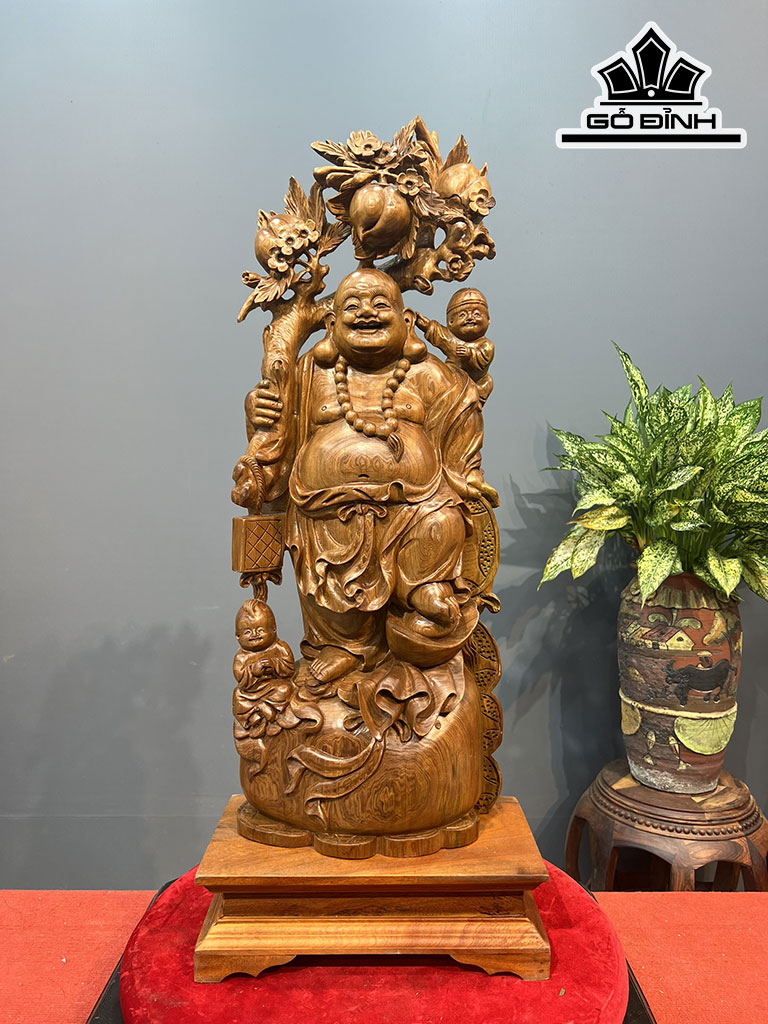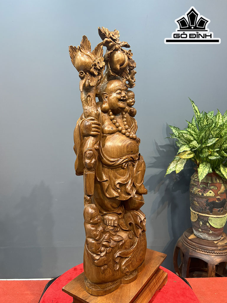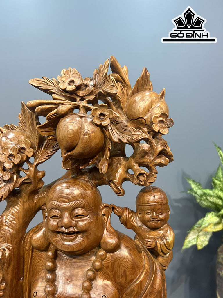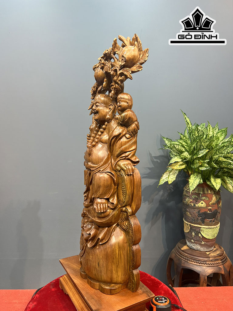 Tượng Phật Di Lặc Nhị Phúc Gỗ Ngọc Am Cao Cả Kỷ 85 Ngang 28 Sâu 12 (cm)