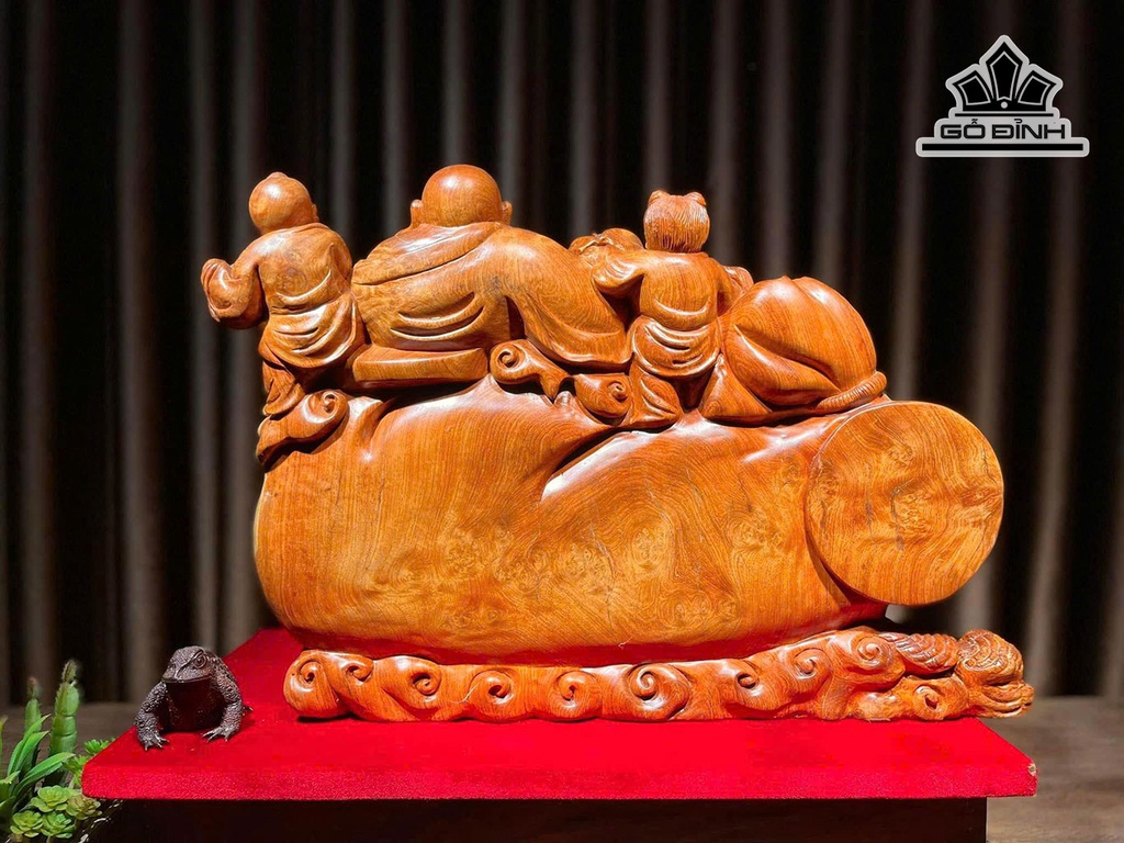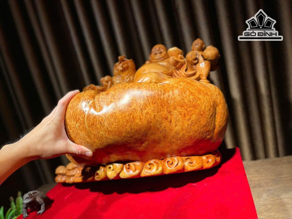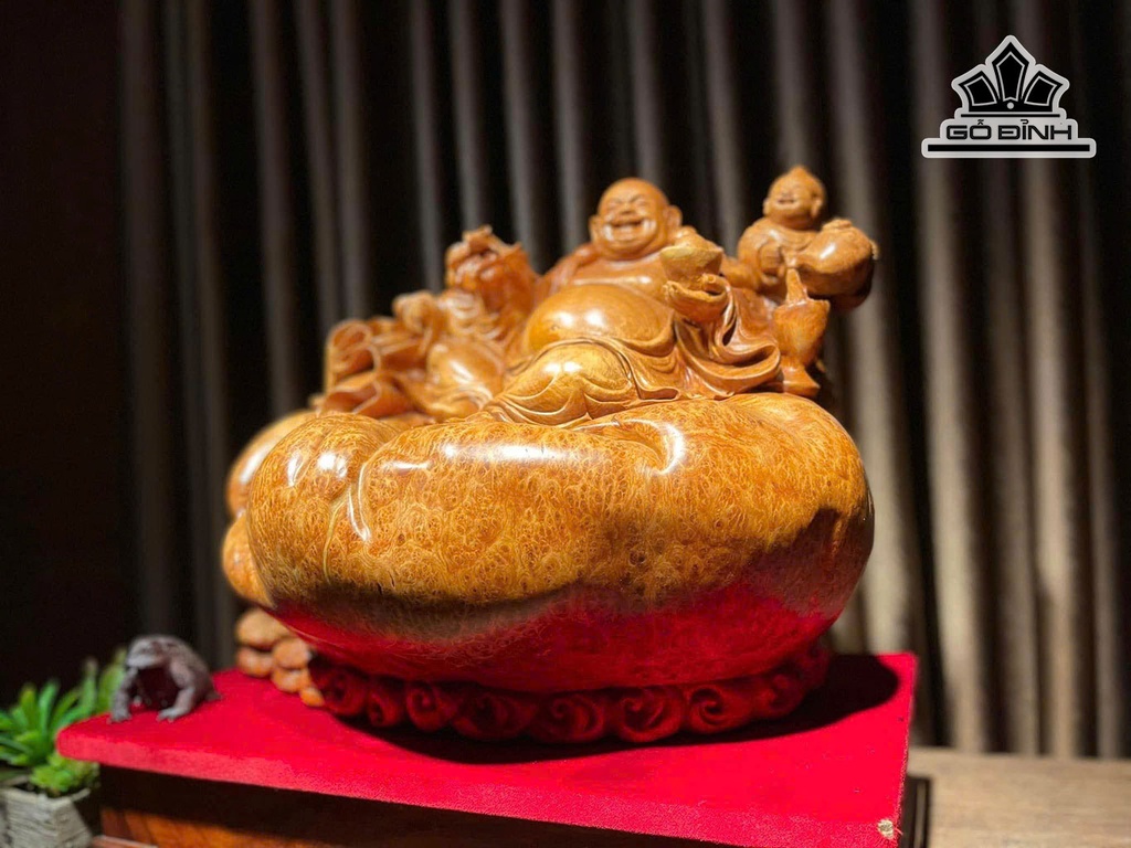 Tượng Phật Di Lặc Nhị Phúc Gỗ Nu Hương Cao 37 Ngang 52 Sâu 26 (cm)