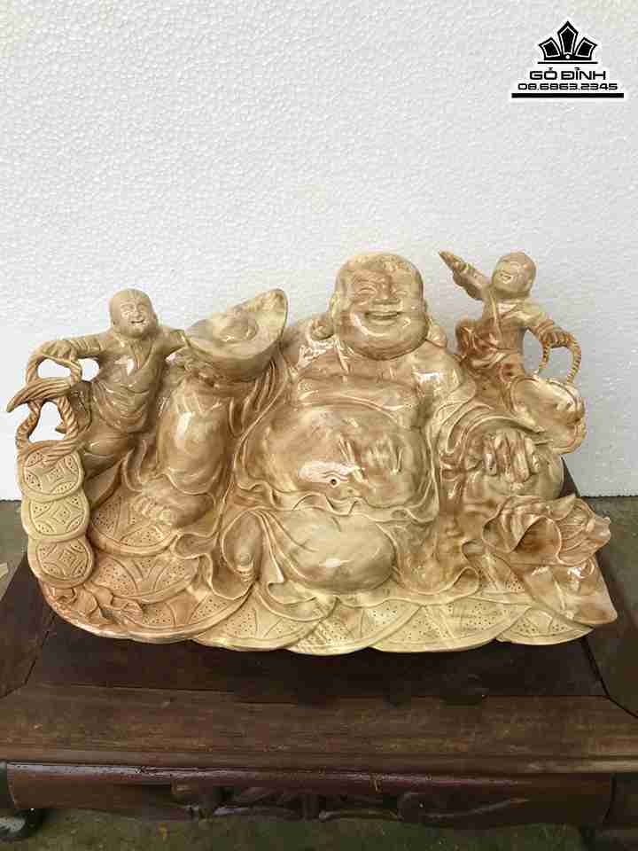 Tượng Phật Di Lặc Nhị Phúc Gỗ Nu Nghiến Cao 22 Ngang 41 Sâu 31 (cm)