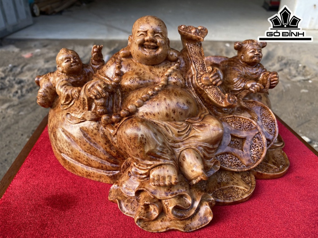 Tượng Phật Di Lặc Nhị Phúc Gỗ Nu Ngọc Am Cao 15 Ngang 26 Sâu 22 (cm)