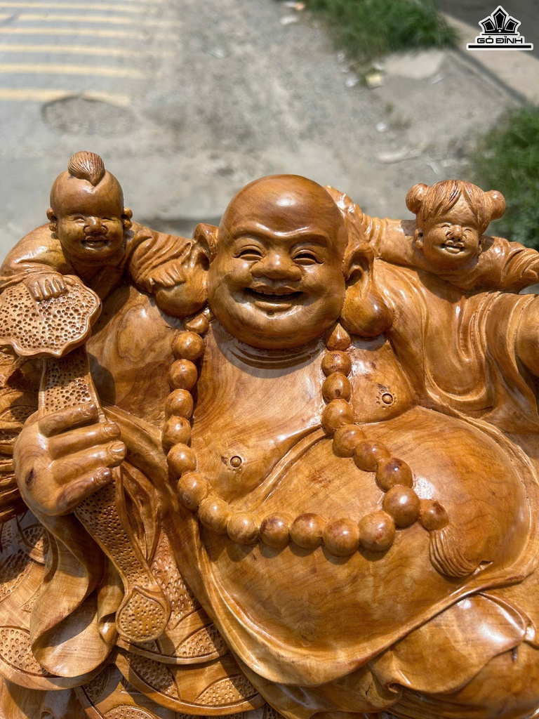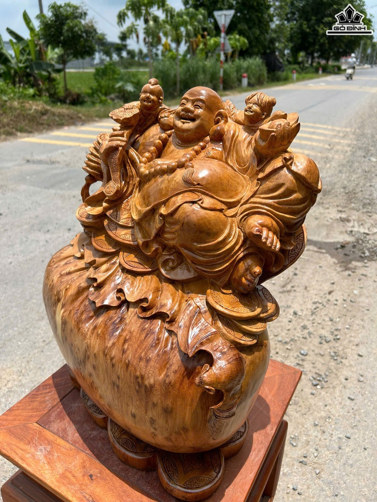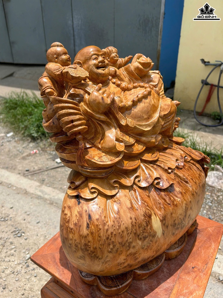 Tượng Phật Di Lặc Nhị Phúc Gỗ Nu Ngọc Am Cao 46 Ngang 41 Sâu 21 (cm) - 14kg