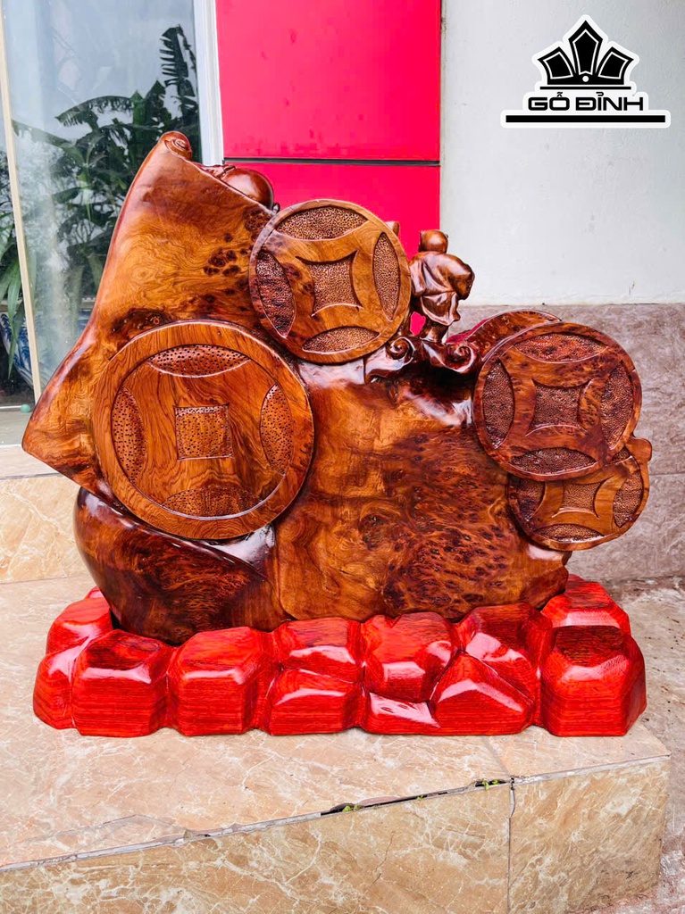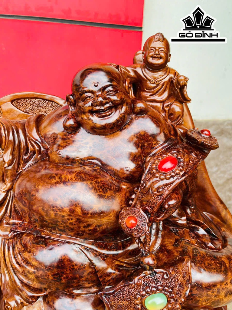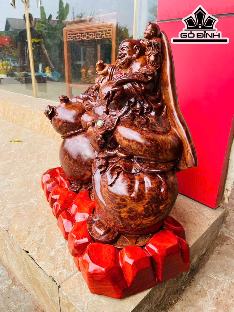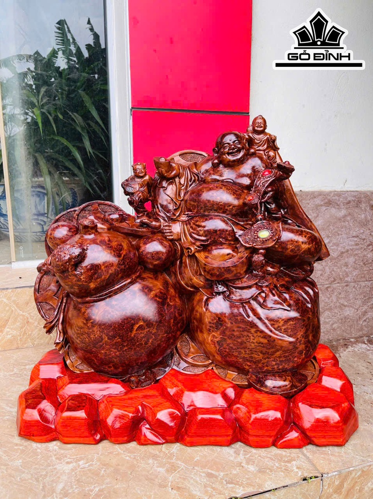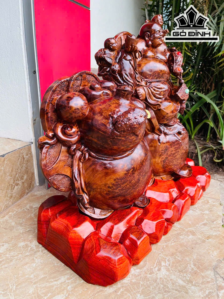 Tượng Phật Di Lặc Nhị Phúc Gỗ Nu Ngọc Am Cao 48 Ngang 60 Sâu 20 (cm) - Cả Kỷ Cao 56 Ngang 62 Sâu 28 (cm) - 31kg