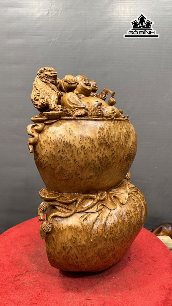 Tượng Phật Di Lặc Nhị Phúc Gỗ Nu Ngọc Am Cao 52 Ngang 35 Sâu 23 (cm)