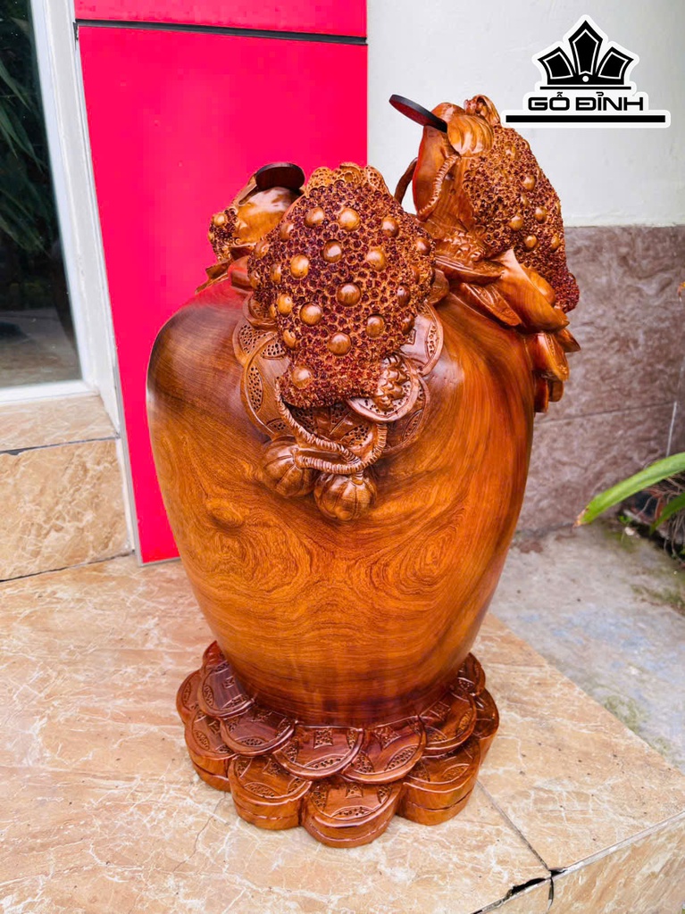 Tượng Phật Di Lặc Nhị Phúc Gỗ Sưa Cao 30 Ngang 46 Sâu 20 (cm) - 7kg