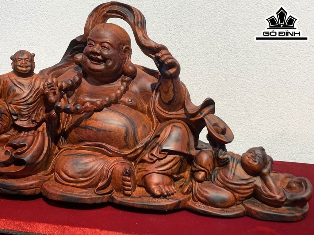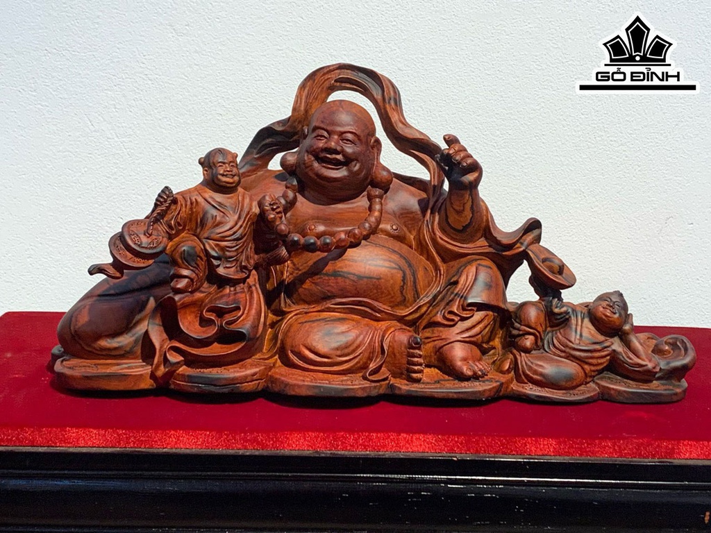Tượng Phật Di Lặc Nhị Phúc Gỗ Trắc Cao 20 Ngang 45 Sâu 18 (cm)