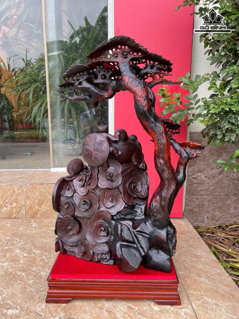 Tượng Phật Di Lặc Nhị Phúc Gỗ Trắc Cao 60 Ngang 36 Sâu 27 (cm) - Cả Kỷ Cao 68 (cm) - 12kg