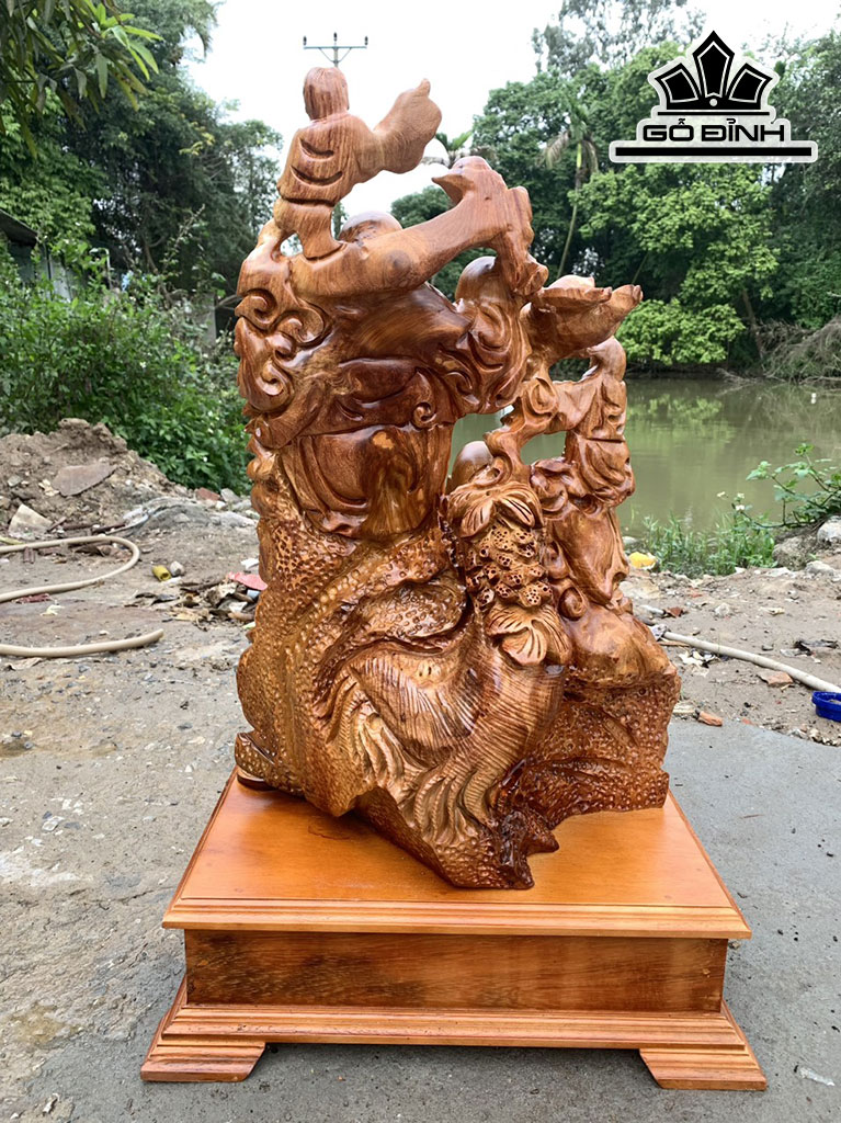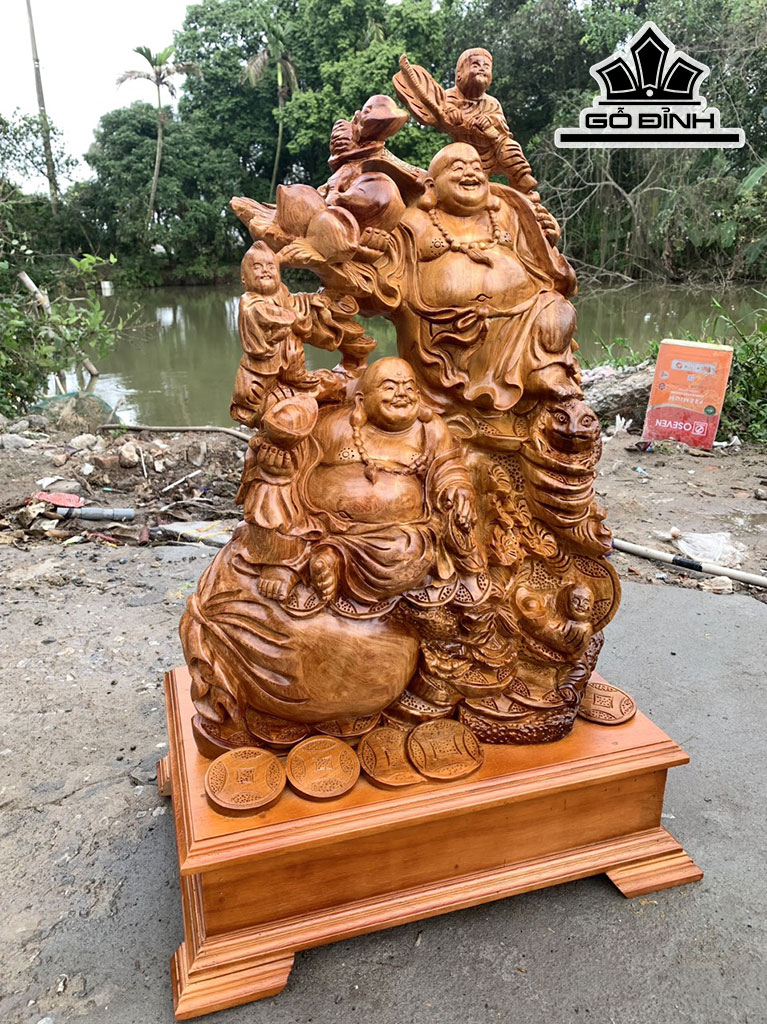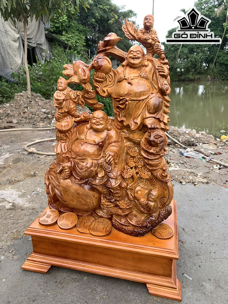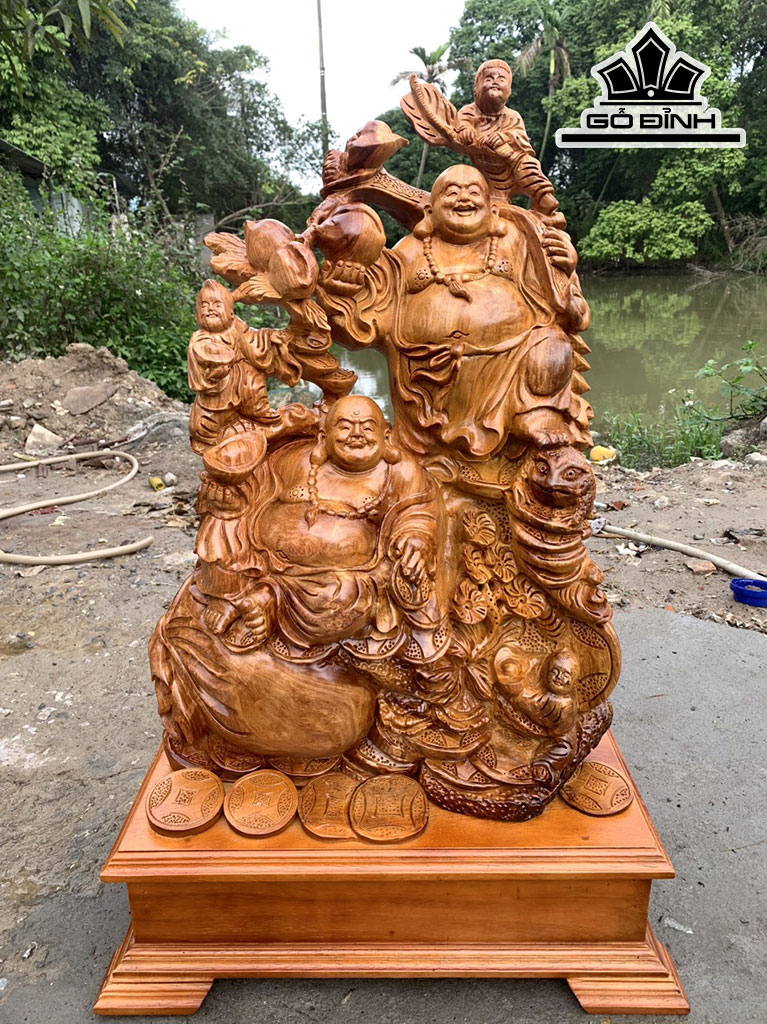 Tượng Phật Di Lặc Nhị Phúc Lâm Môn Gỗ Hương Cao Cả Kỷ 76 Ngang 43 Sâu 27 (cm)