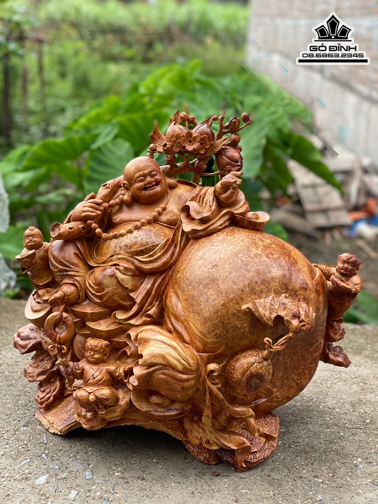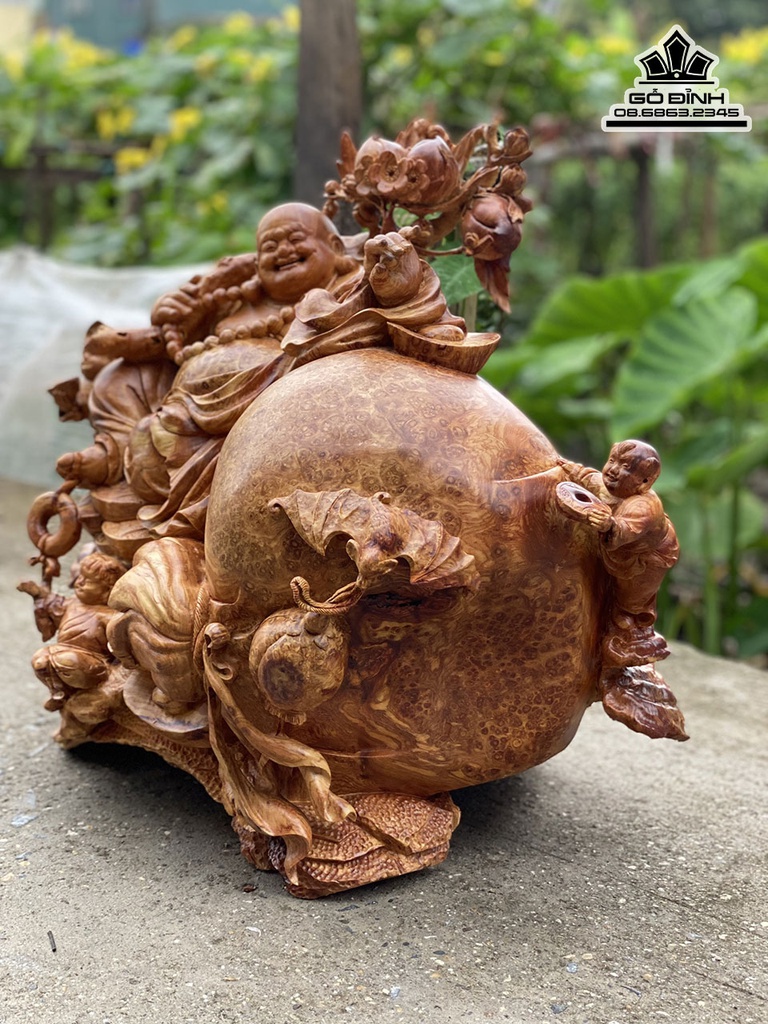 Tượng Phật Di Lặc Nhị Phúc Ngồi Bao Tiền Gỗ Nu Hương Cao 52 Ngang 60 Sâu 38 (cm)