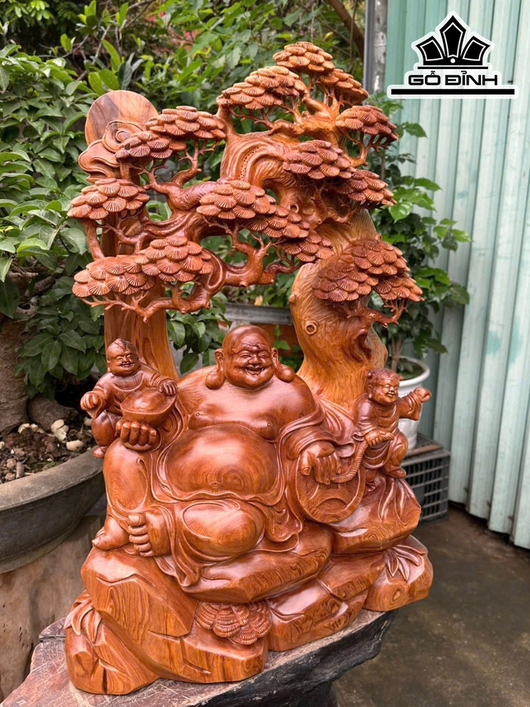 Tượng Phật Di Lặc Nhị Phúc Ngồi Tùng Gỗ Ngọc Am Cao 73 Ngang 50 Sâu 23 (cm)