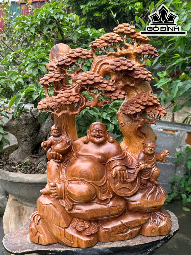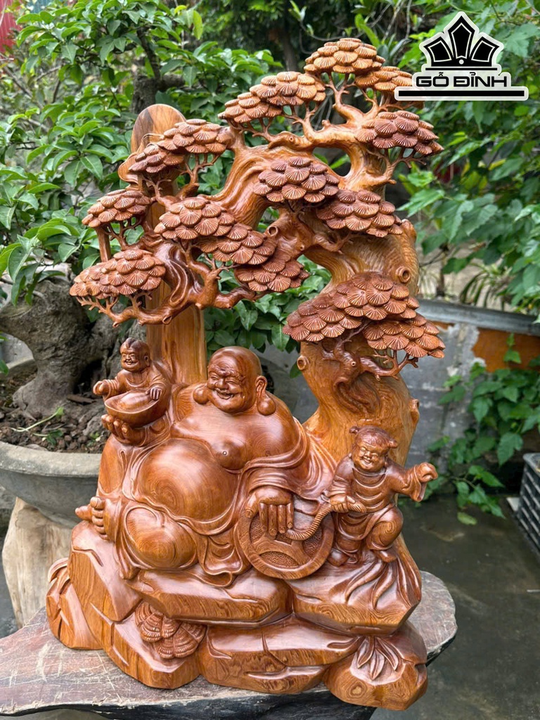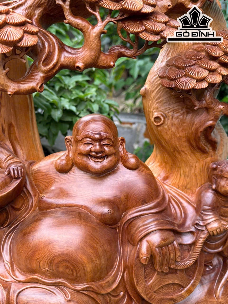 Tượng Phật Di Lặc Nhị Phúc Ngồi Tùng Gỗ Ngọc Am Cao 73 Ngang 50 Sâu 23 (cm)