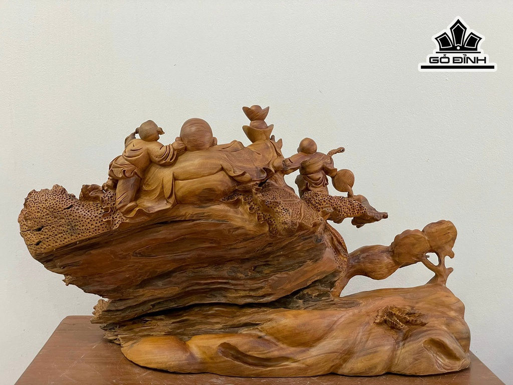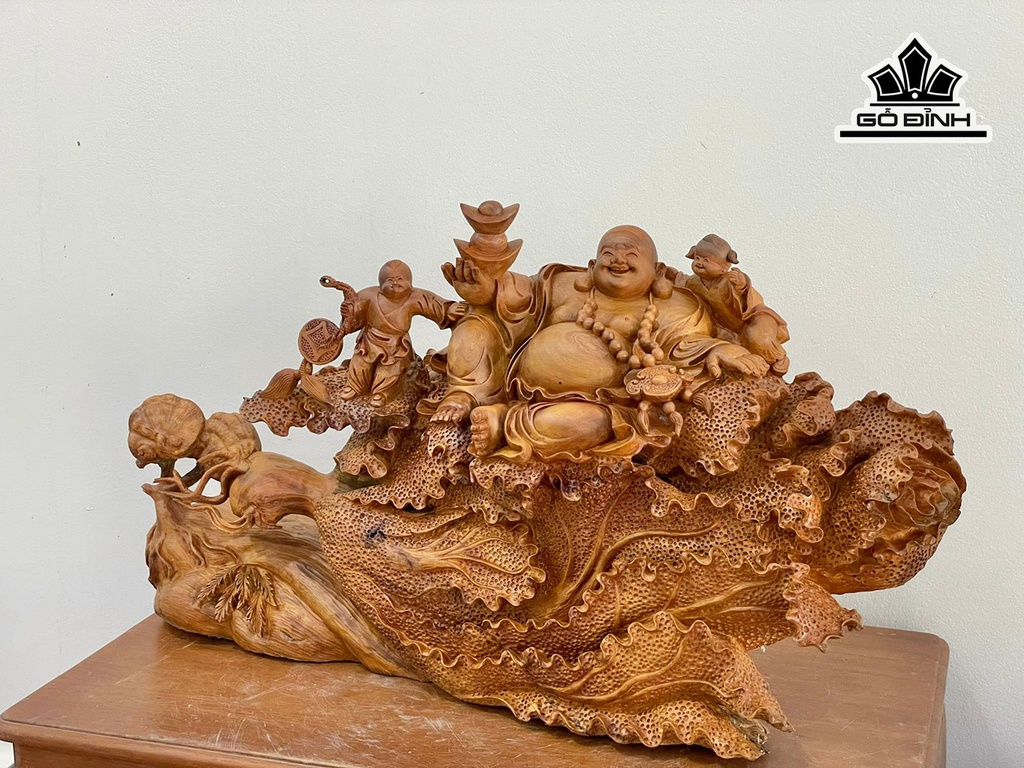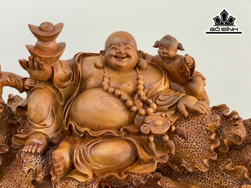Tượng Phật Di Lặc Nhị Phúc Ngự Bắp Cải Gỗ Bách Xanh