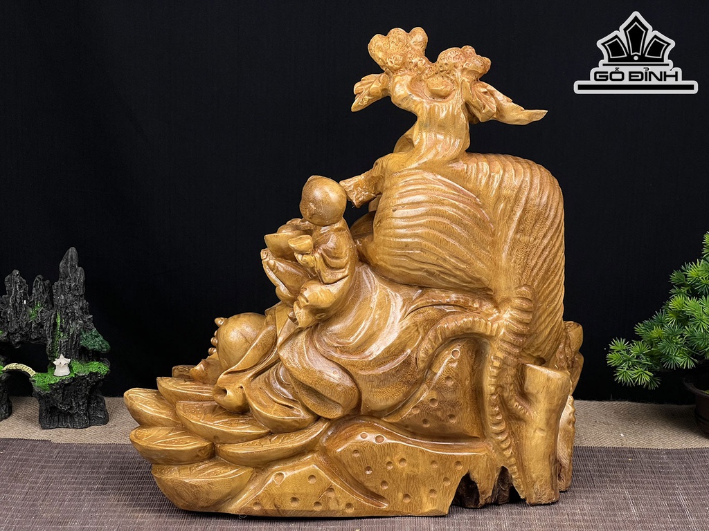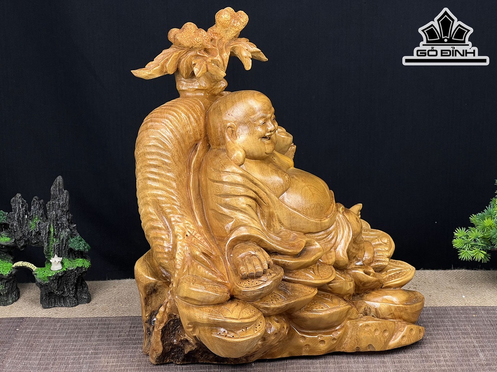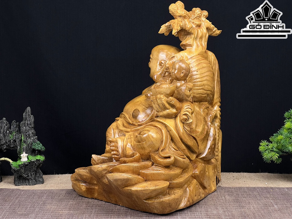 Tượng Phật Di Lặc Nhị Phúc Ngự Tiền Vàng Gỗ Xá Xị Cao 40 Ngang 40 Sâu 26 (cm)