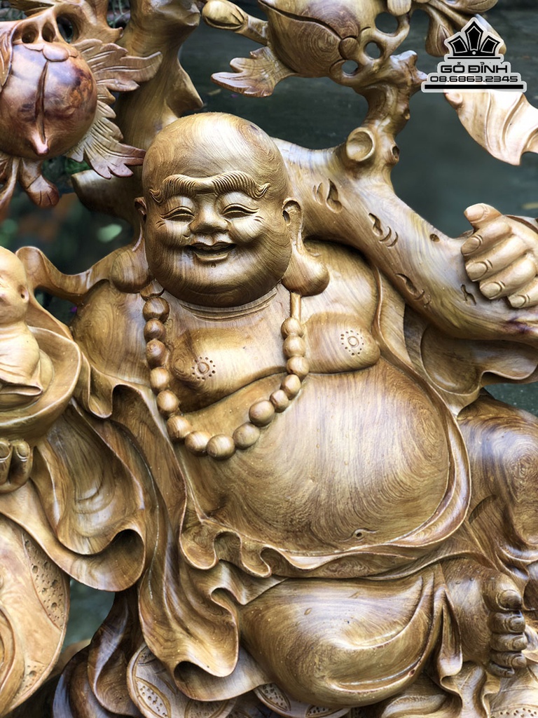 Tượng Phật Di Lặc Nhị Phúc Vác Cành Đào Gỗ Hương