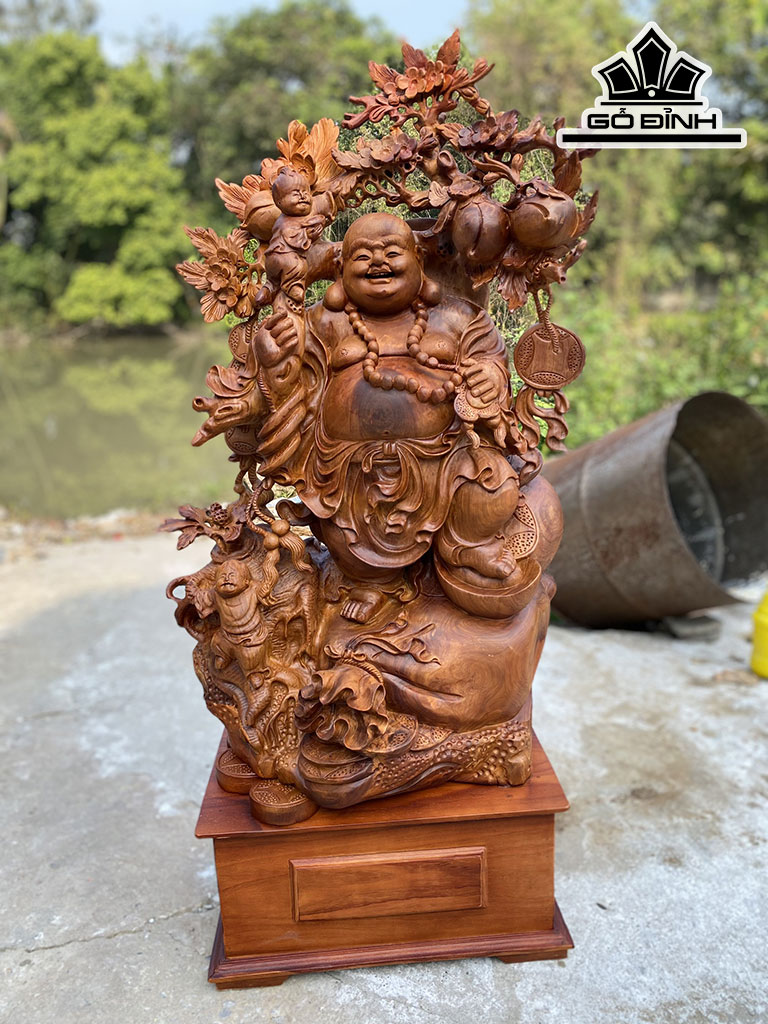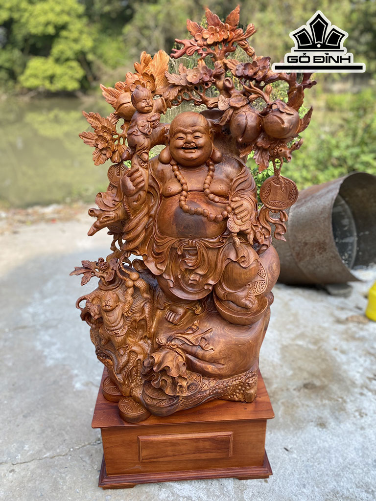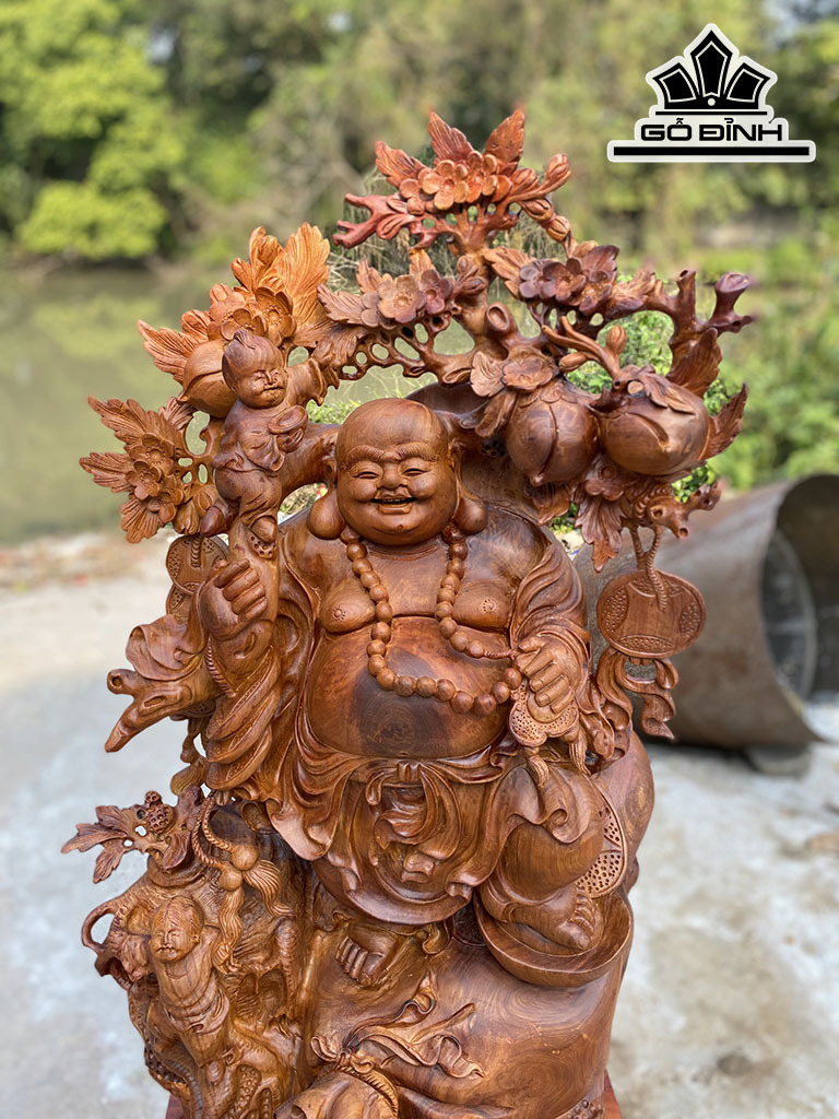 Tượng Phật Di Lặc Nhị Phúc Vác Cành Đào Gỗ Hương Cao Cả Kỷ 126 Ngang 68 Sâu 48 (cm)