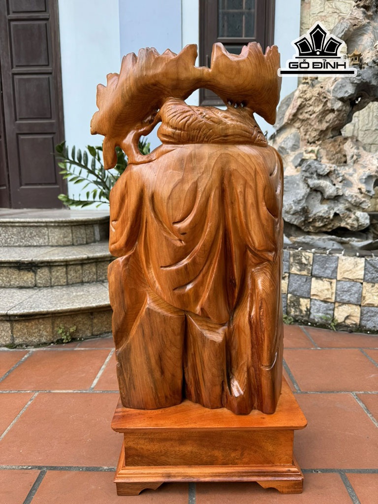 Tượng Phật Di Lặc Nhị Phúc Vác Cành Đào Gỗ Ngọc Am Cao 81 Ngang 45 Sâu 18 (cm)