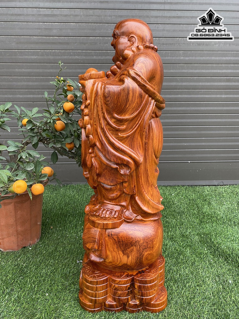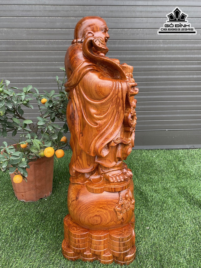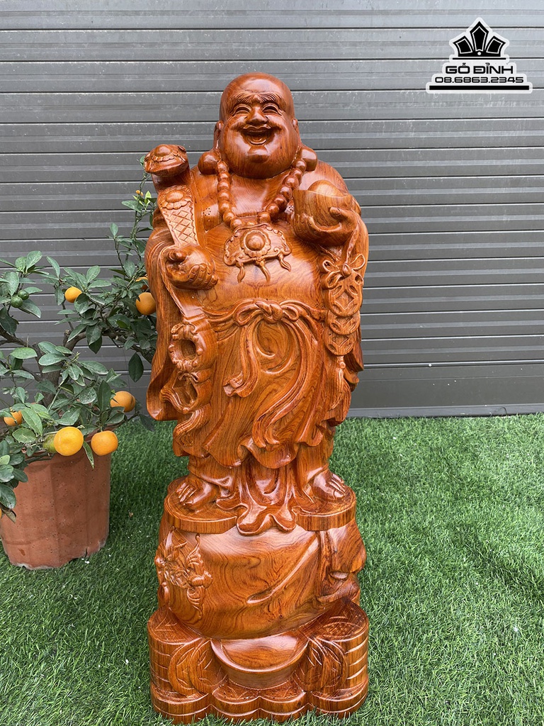 Tượng Phật Di Lặc Như Ý Gỗ Hương Cao 79 Ngang 30 Sâu 25 (cm)