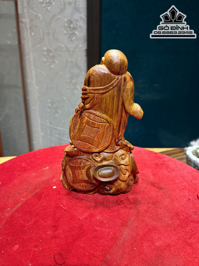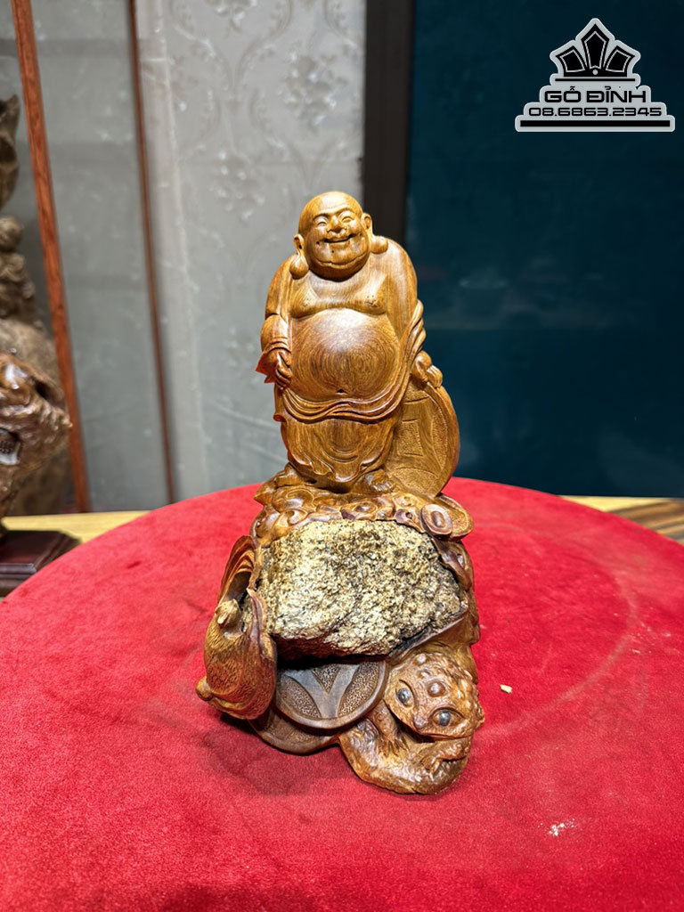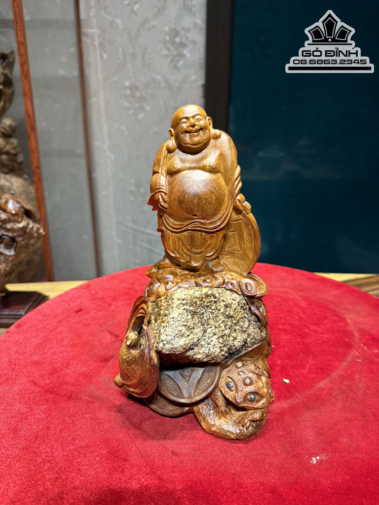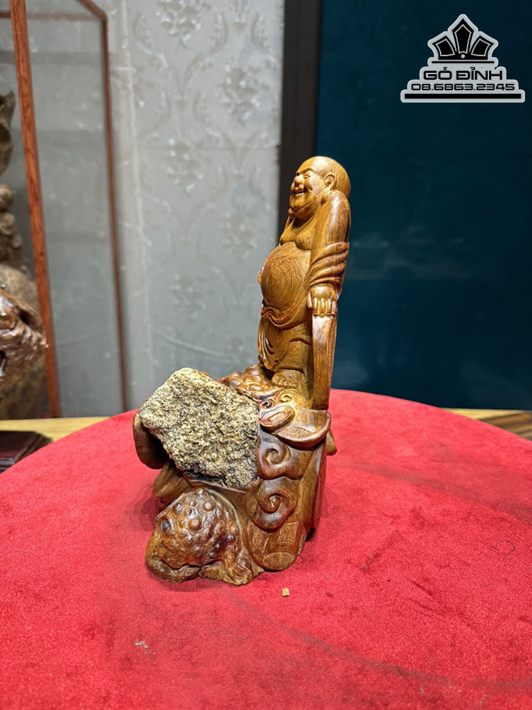 Tượng Phật Di Lặc Ôm Đá Tự Nhiên Gỗ Hương Nguyên Khối