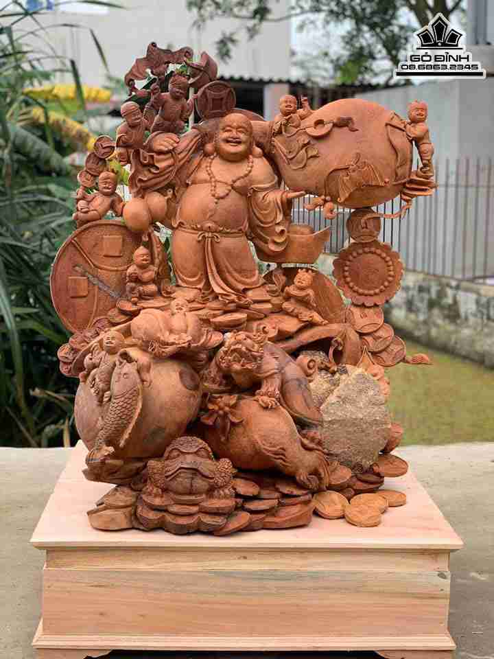 Tượng Phật Di Lặc Tài Lộc Gỗ Hương Cao 100 Ngang 85 Sâu 55 (cm)