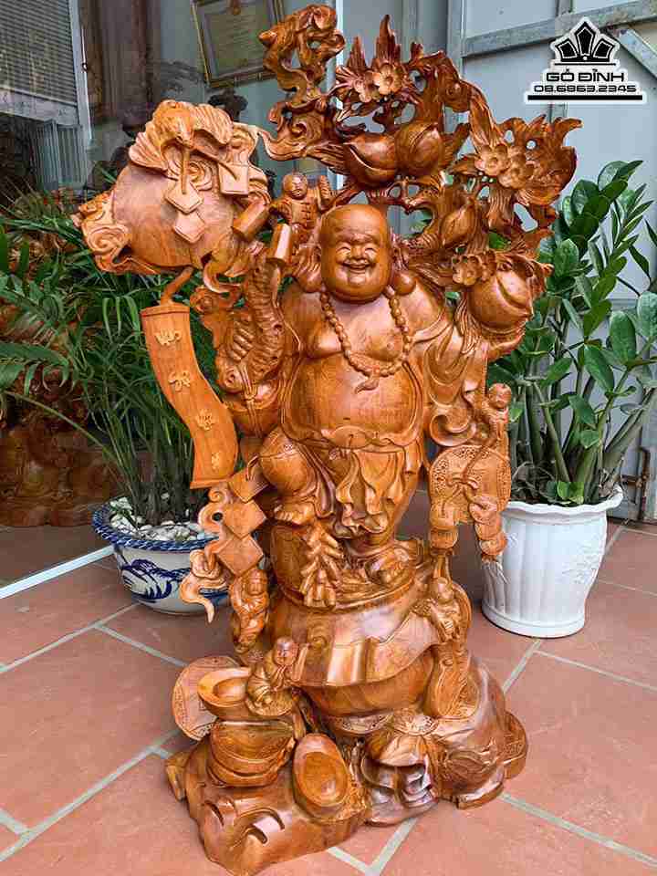 Tượng Phật Di Lặc Tài Lộc Gỗ Hương Cao 108 Ngang 66 Sâu 37 (cm)