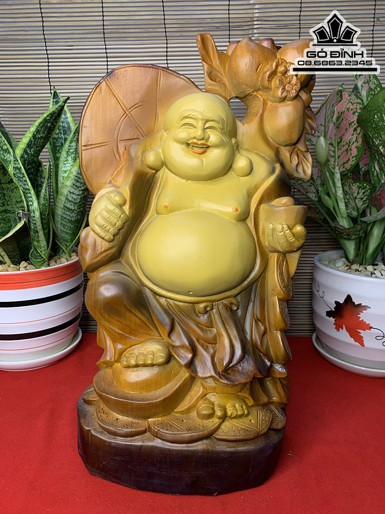 Tượng Phật Di Lặc Tài Lộc Gỗ Pơ Mu Cao 42 Ngang 24 Sâu 12 (cm)