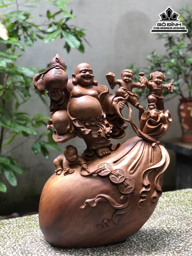 Tượng Phật Di Lặc Tam Phúc Đứng Bao Tiền Gỗ Xá Xị
