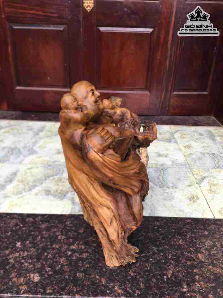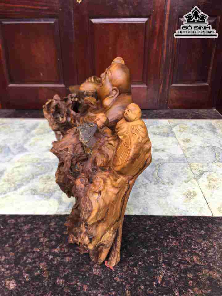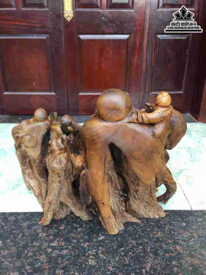 Tượng Phật Di Lặc Tam Phúc Gỗ Bách Xanh Cao 63 Rộng 69 Dày 30 (cm)