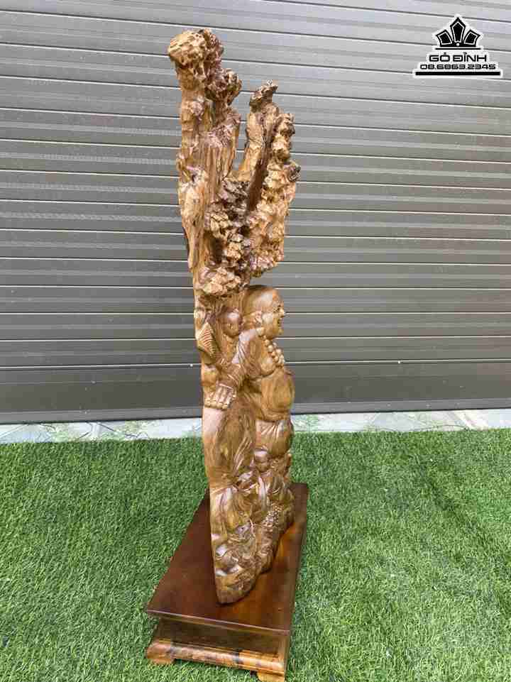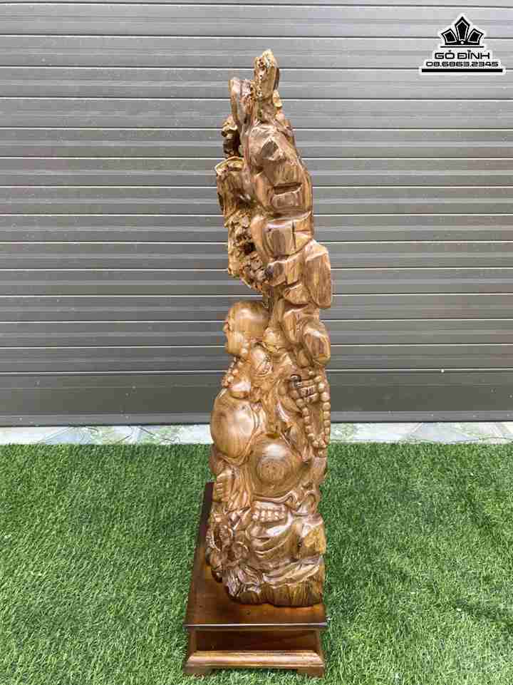 Tượng Phật Di Lặc Tam Phúc Gỗ Bách Xanh Cao 92 Ngang 47-42 Sâu 20 (cm)
