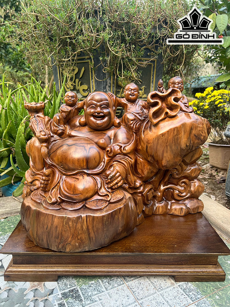 Tượng Phật Di Lặc Tam Phúc Gỗ Bách Xanh Cao 36 Ngang 52 Sâu 26 (cm)