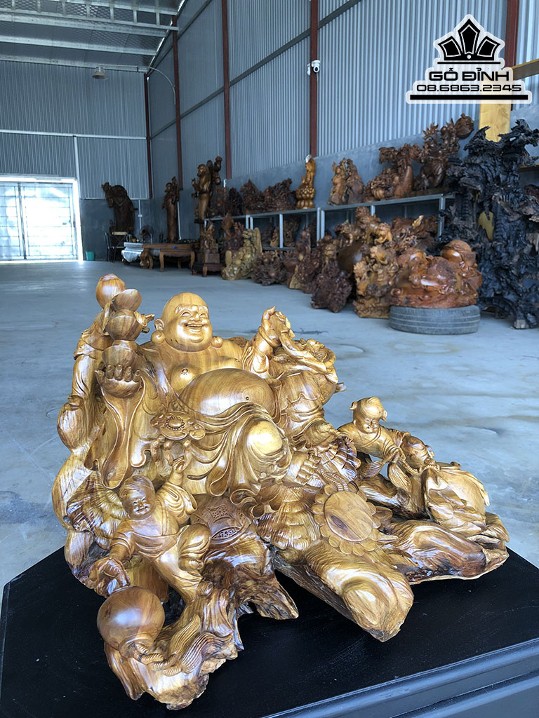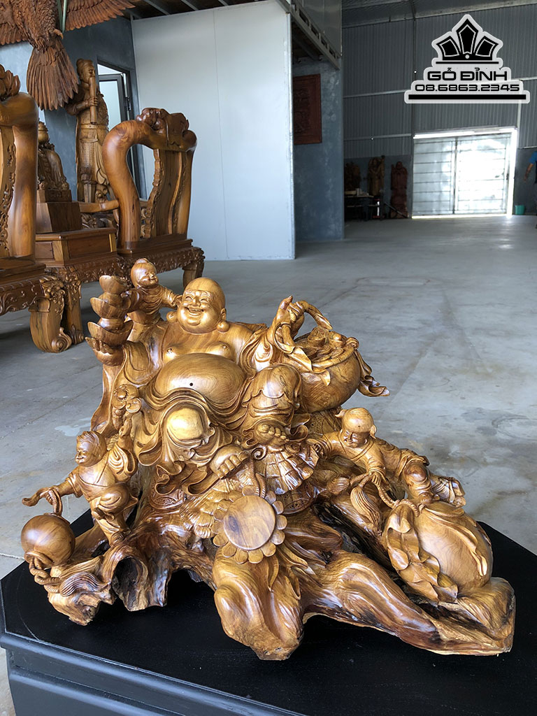 Tượng Phật Di Lặc Tam Phúc Gỗ Bách Xanh