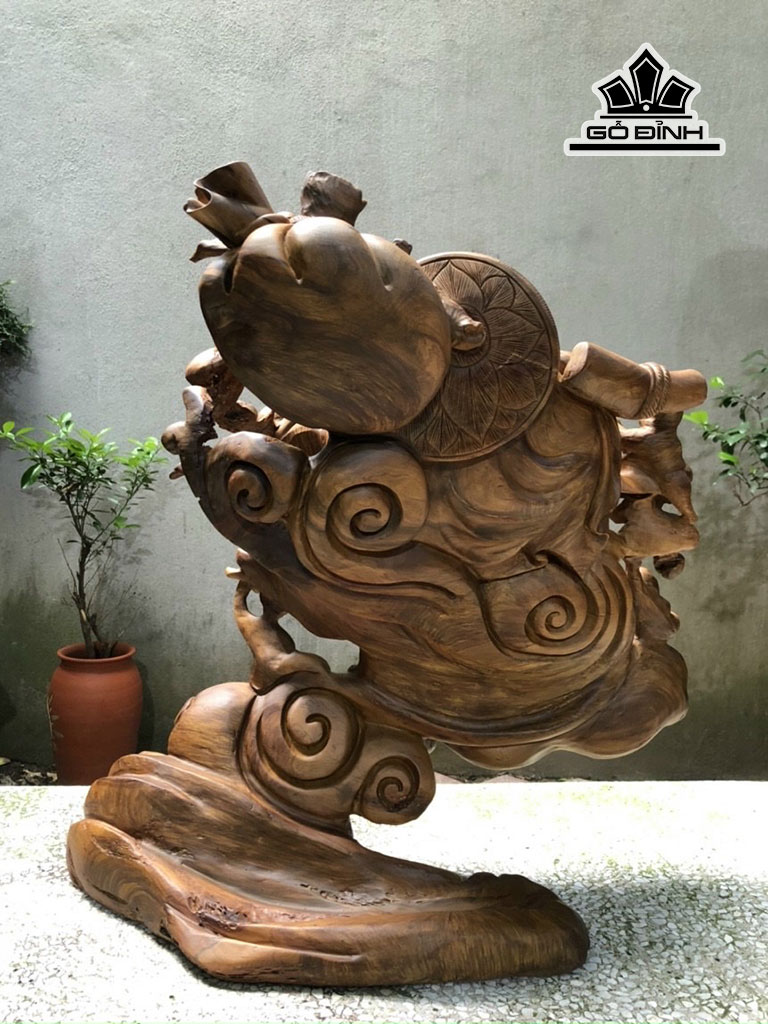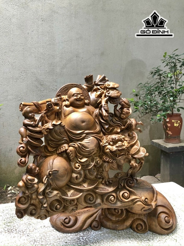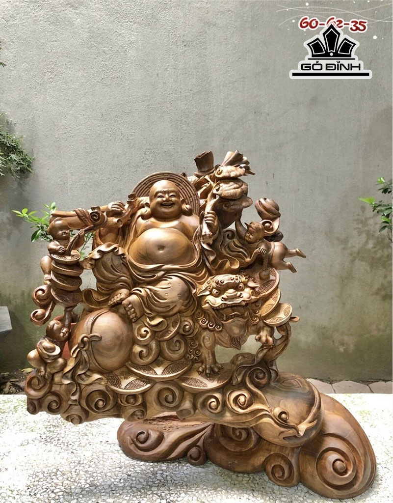 Tượng Phật Di Lặc Tam Phúc Gỗ Bách Xanh Cao 60 Ngang 62 Sâu 35 (cm)