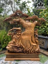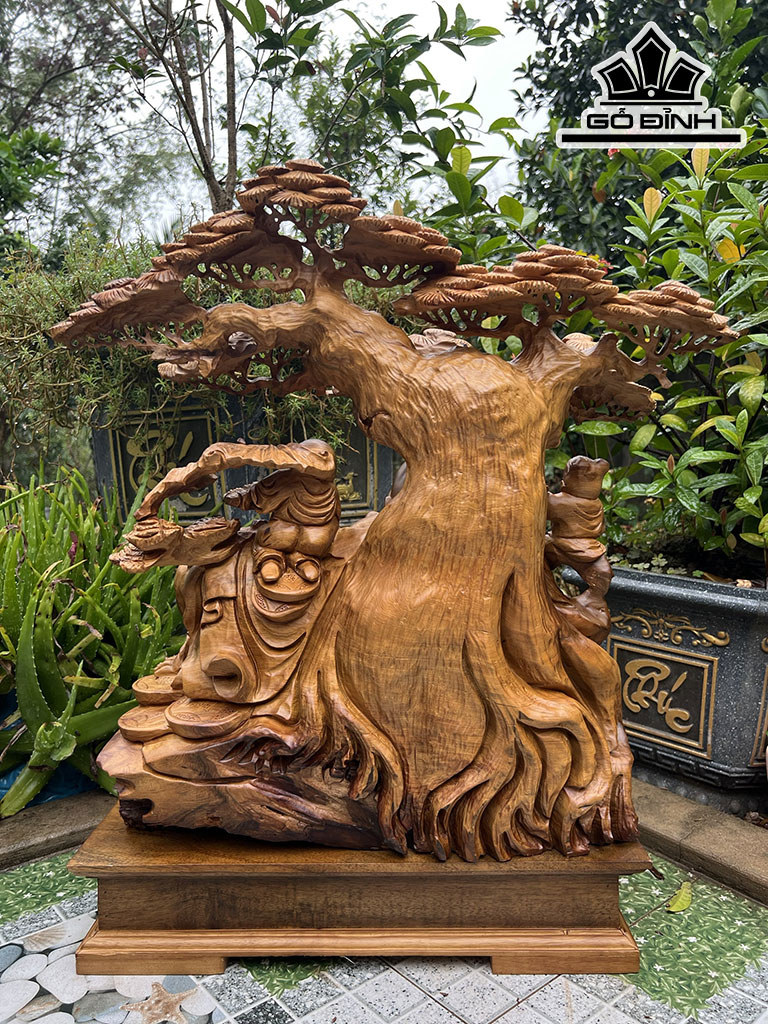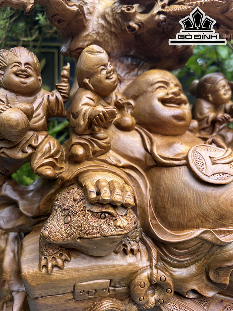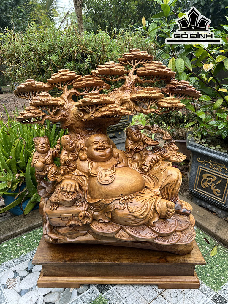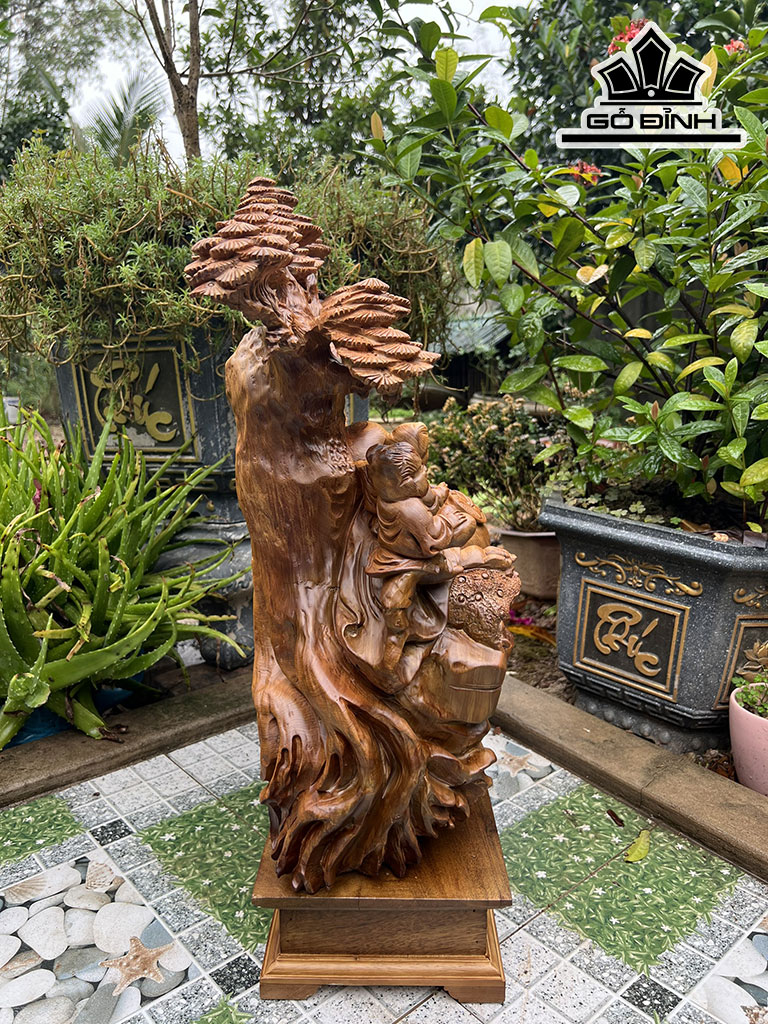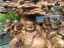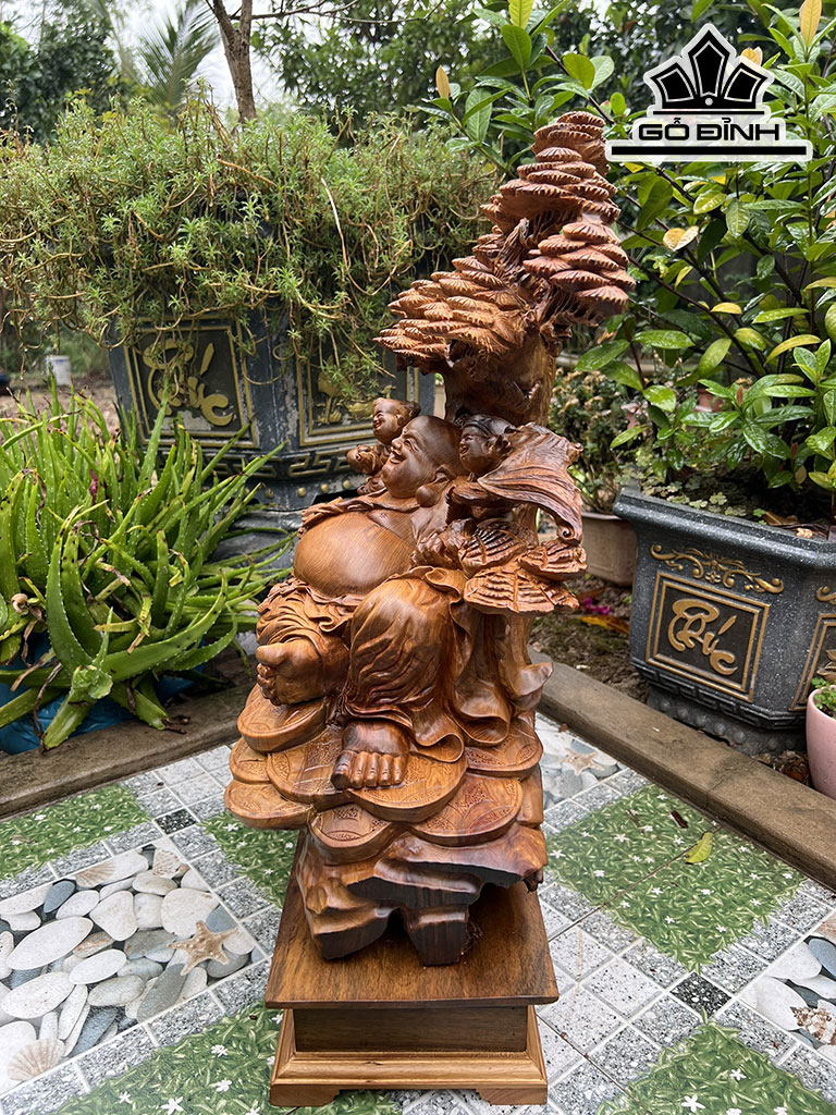 Tượng Phật Di Lặc Tam Phúc Gỗ Bách Xanh Cao 65 Ngang 55 Sâu 24 (cm)