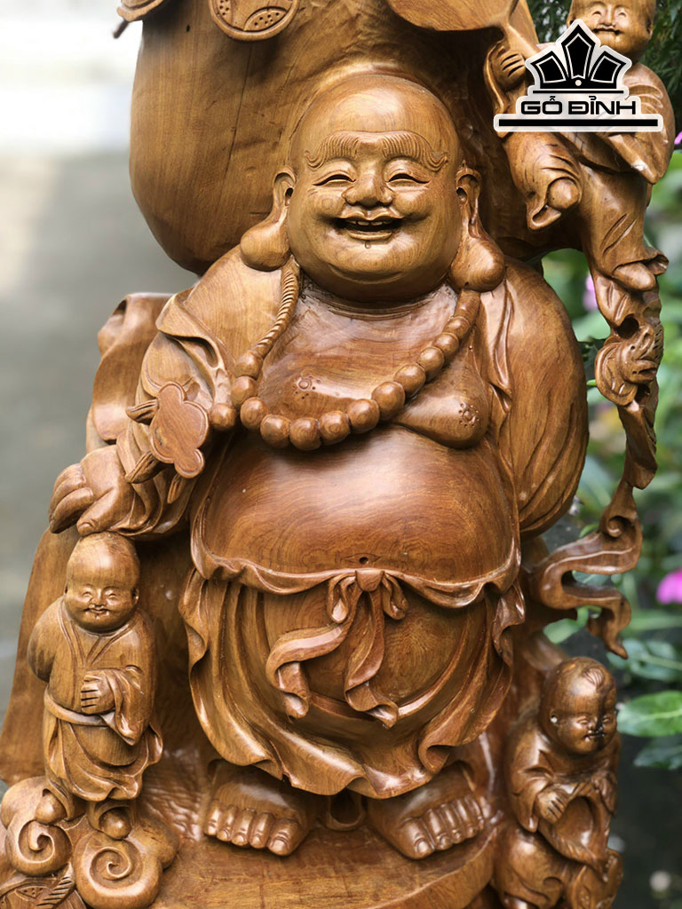 Tượng Phật Di Lặc Tam Phúc Gỗ Bách Xanh Cao 70 Ngang 36 Sâu 23 (cm)