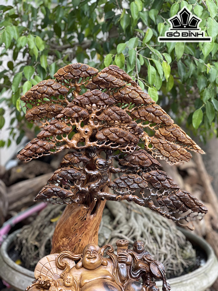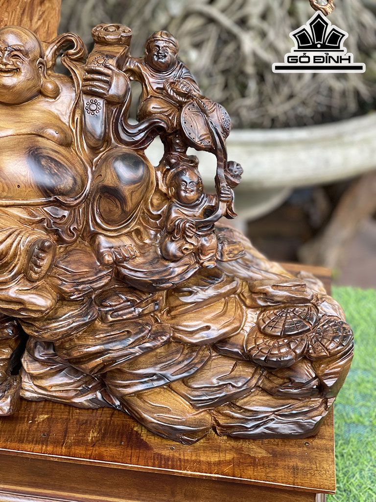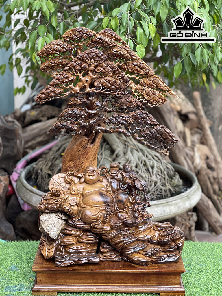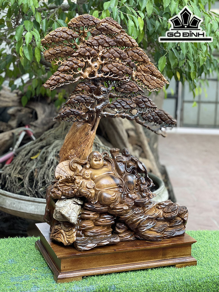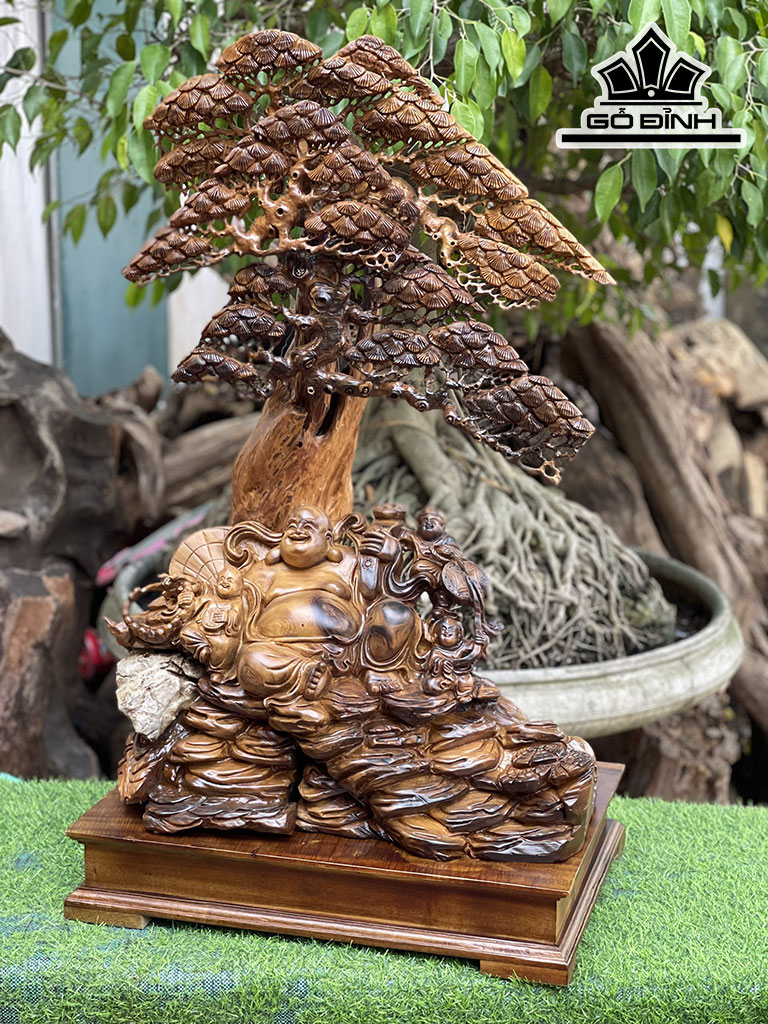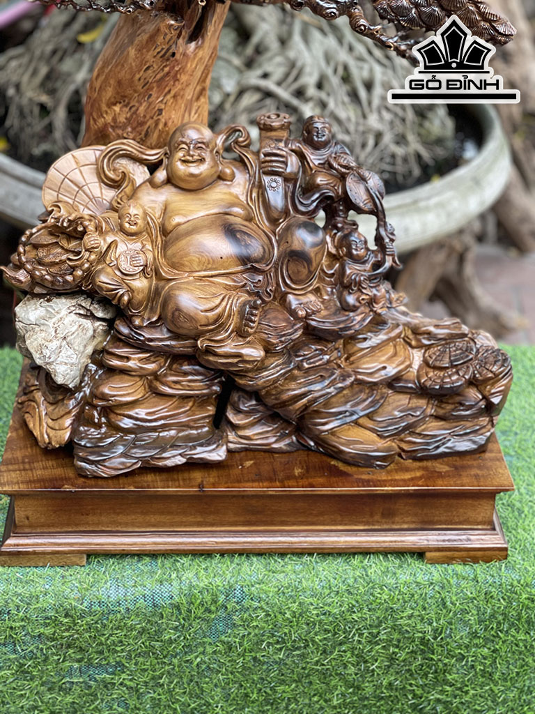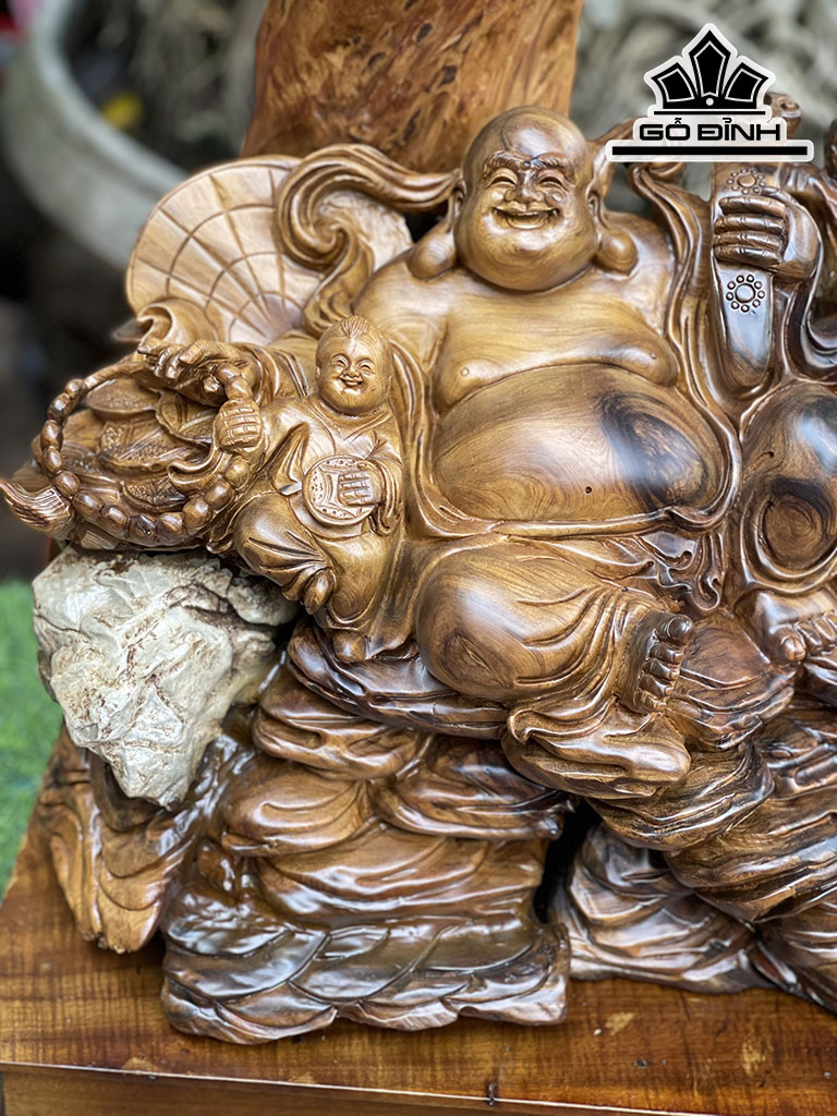 Tượng Phật Di Lặc Tam Phúc Gỗ Bách Xanh Cao 86 Ngang 56 Sâu 36 (cm)